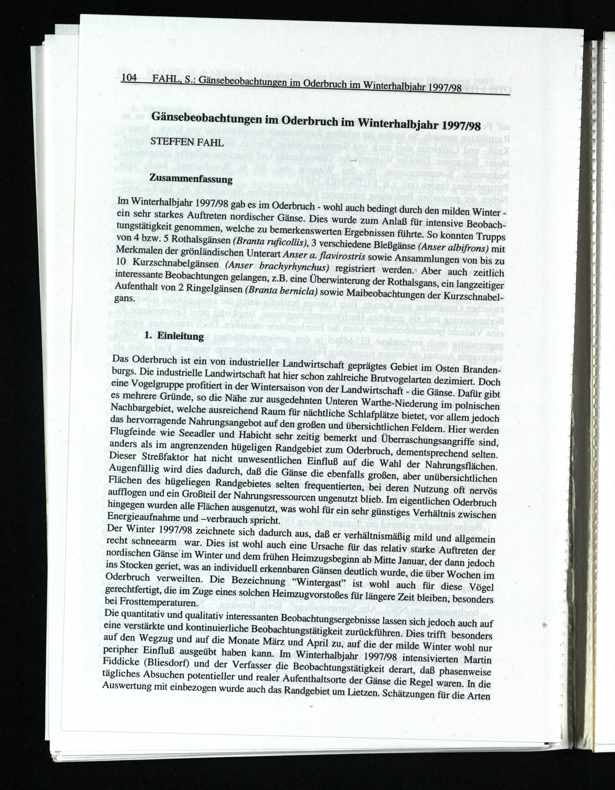 Fahl, Steffen, Gänsebeobachtungen im Oderbruch im Winterhalbjahr 1997/98
