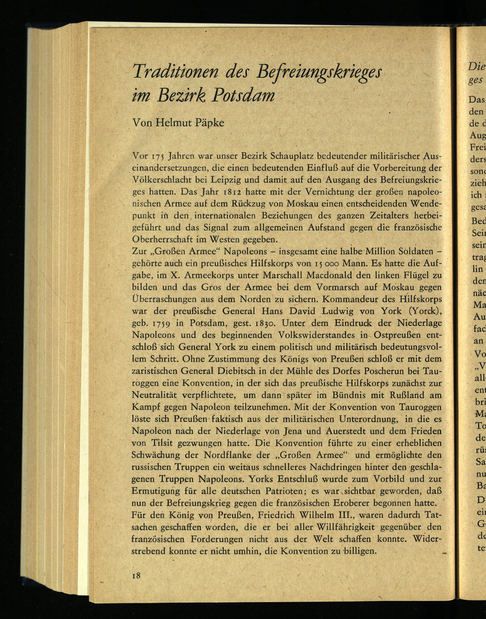 Päpke, Helmut, Traditionen des Befreiungskrieges im Bezirk Potsdam