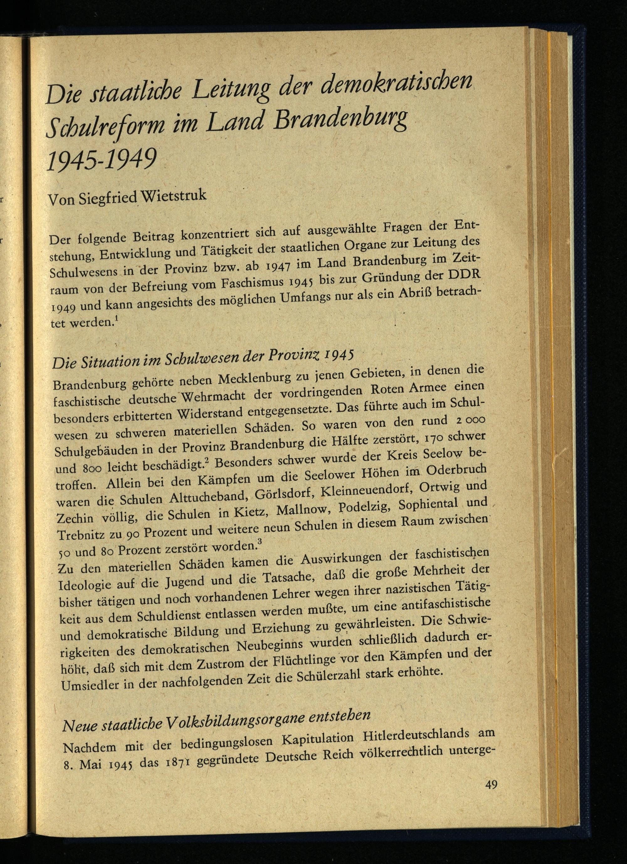 Wietstruk, Siegfried, Die staatliche Leitung der demokratischen Schulreform im Land...