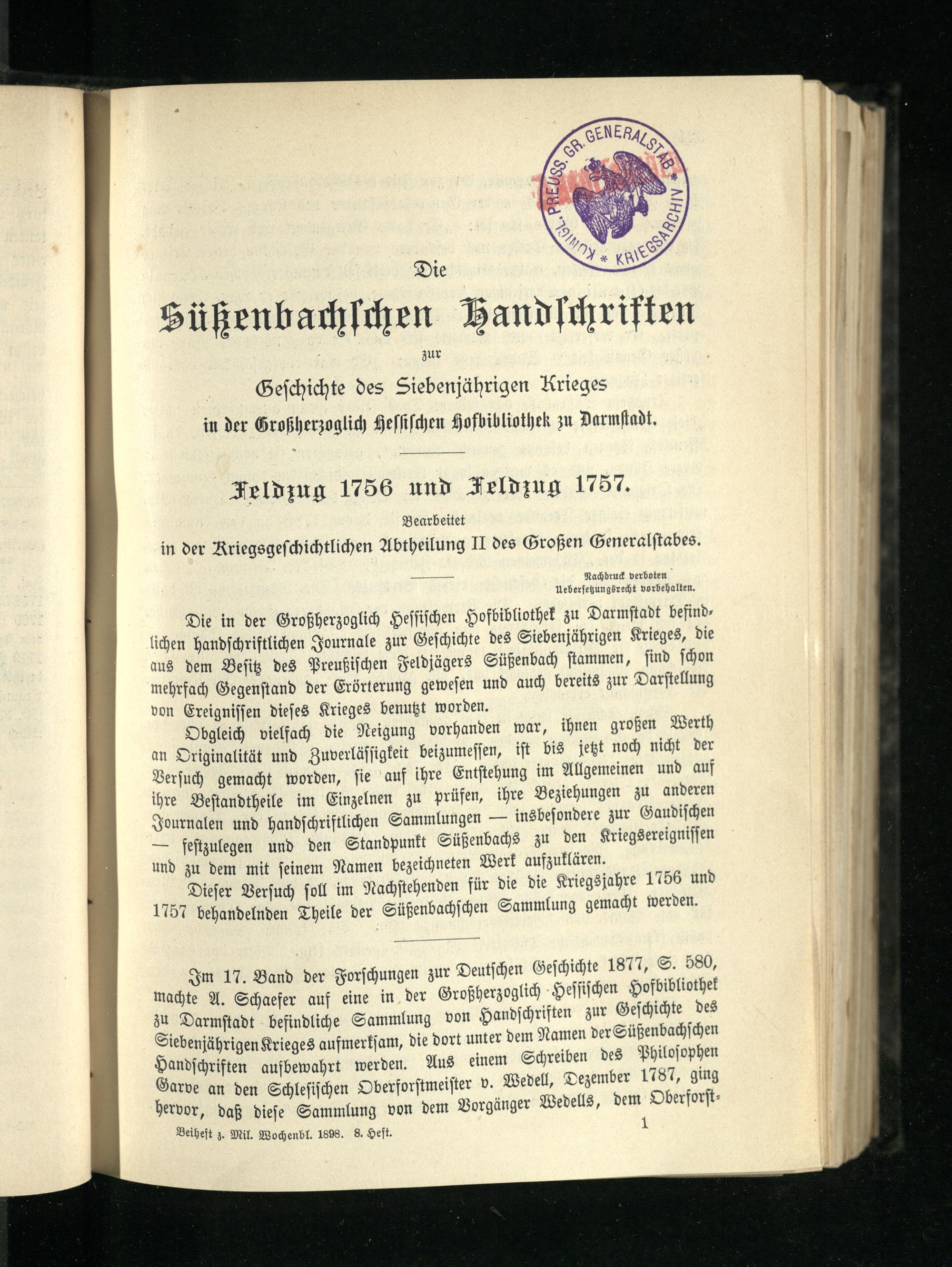 Die Süßenbachschen Handschriften zur Geschichte des Siebenjährigen Krieges in der...
