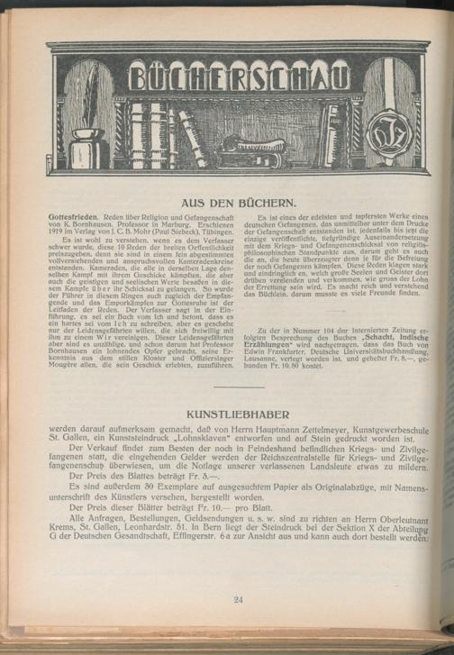 Die Dankesarbeit der deutschen Internierten in der Schweiz.