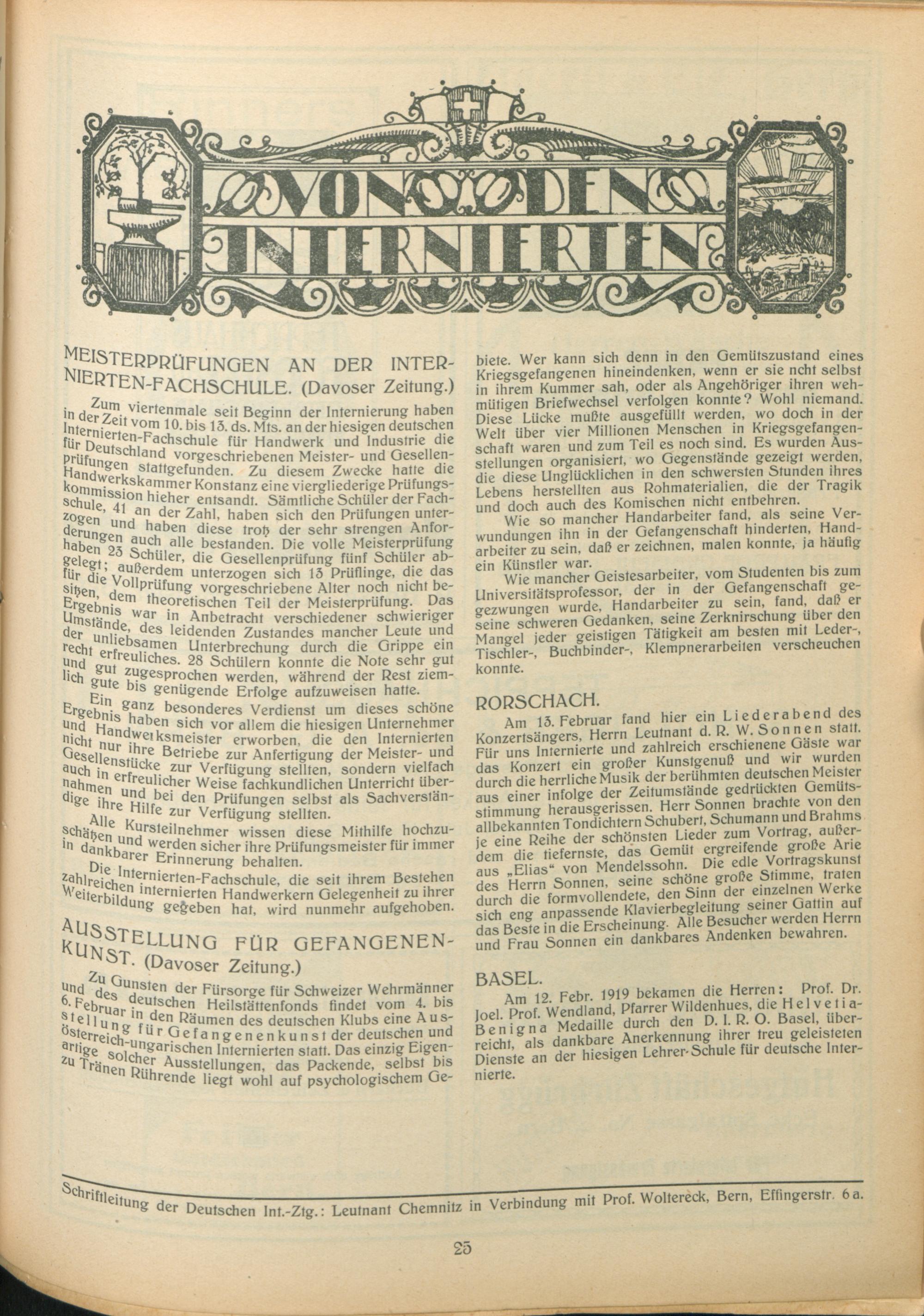 Die Dankesarbeit der deutschen Internierten in der Schweiz.