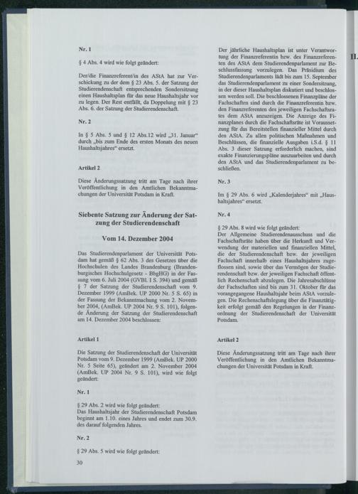 Siebente Satzung zur Änderung der Satzung der Studierendenschaft vom 14. Dezember...