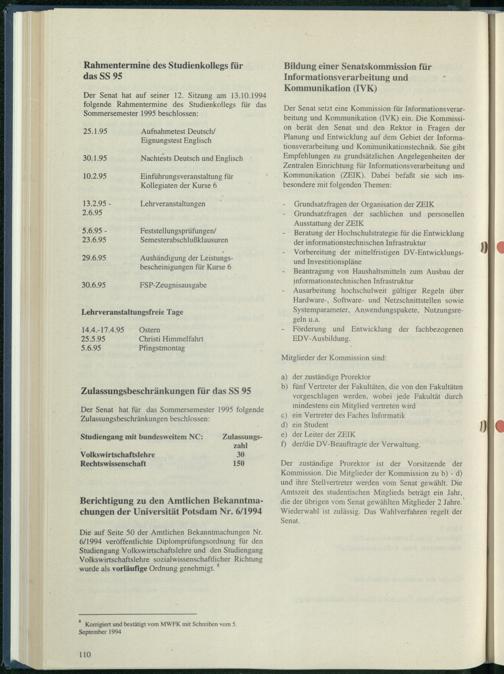 Bildung einer Senatskommission für Informationsverarbeitung und Kommunikation (I...