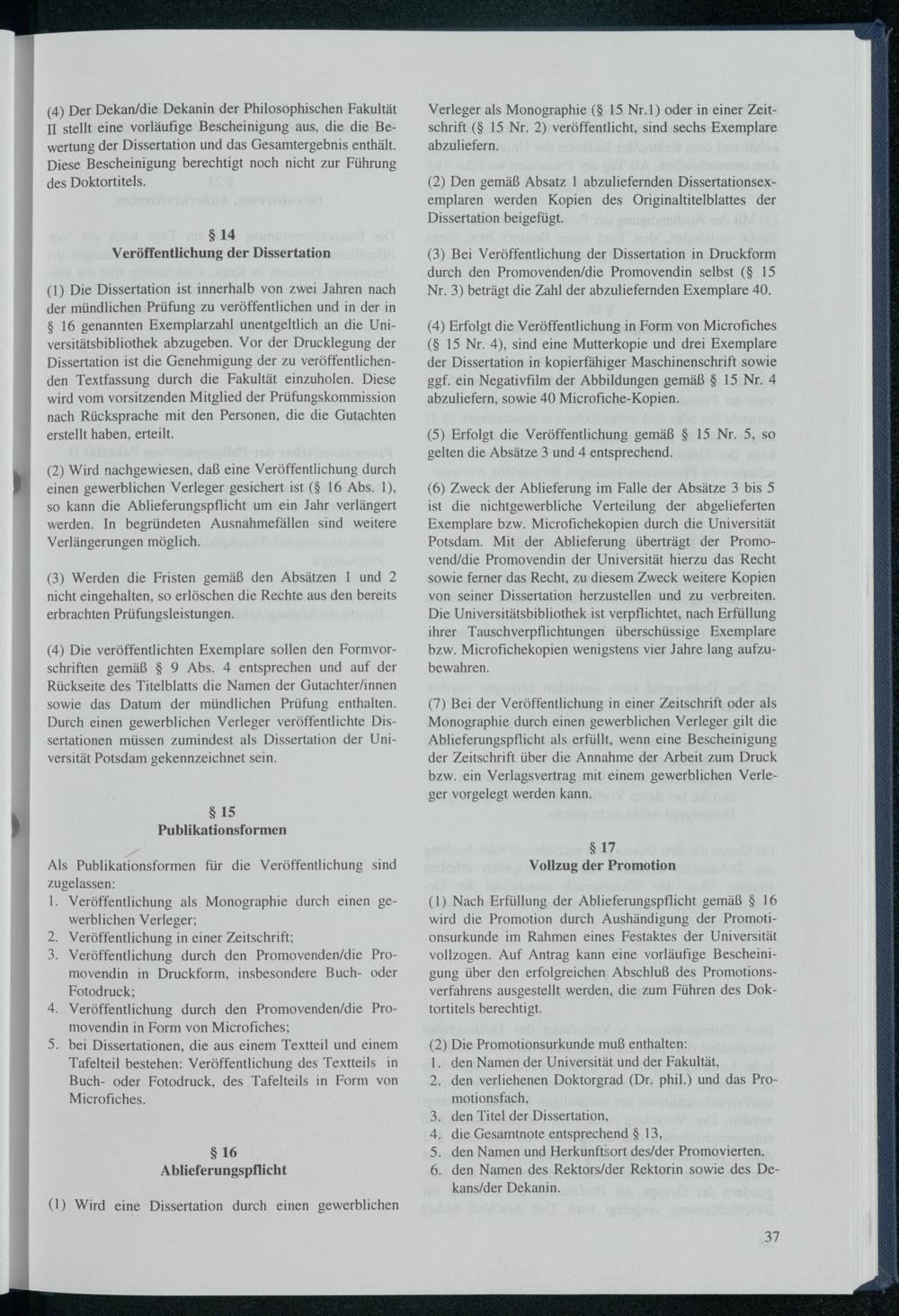 Promotionsordnung der Philosophischen Fakultät II der Universität Potsdam