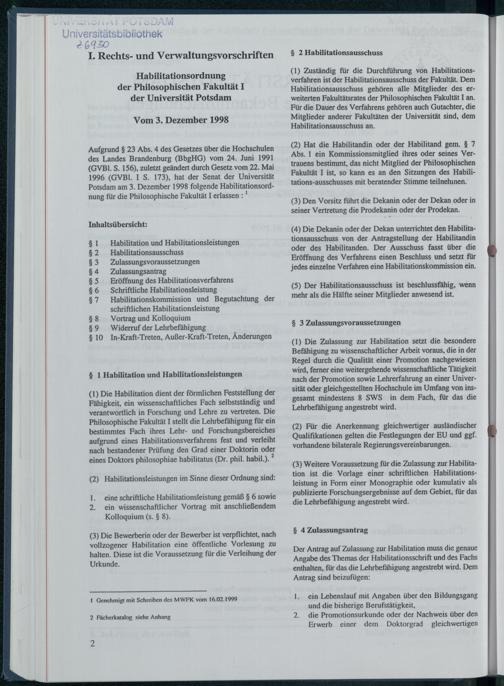 Habilitationsordnung der Philosophischen Fakultät I der Universität Potsdam