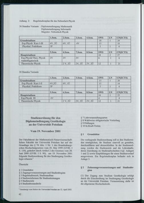 Studienordnung für den Diplomstudiengang Geoökologie an der Universität Potsdam vom...