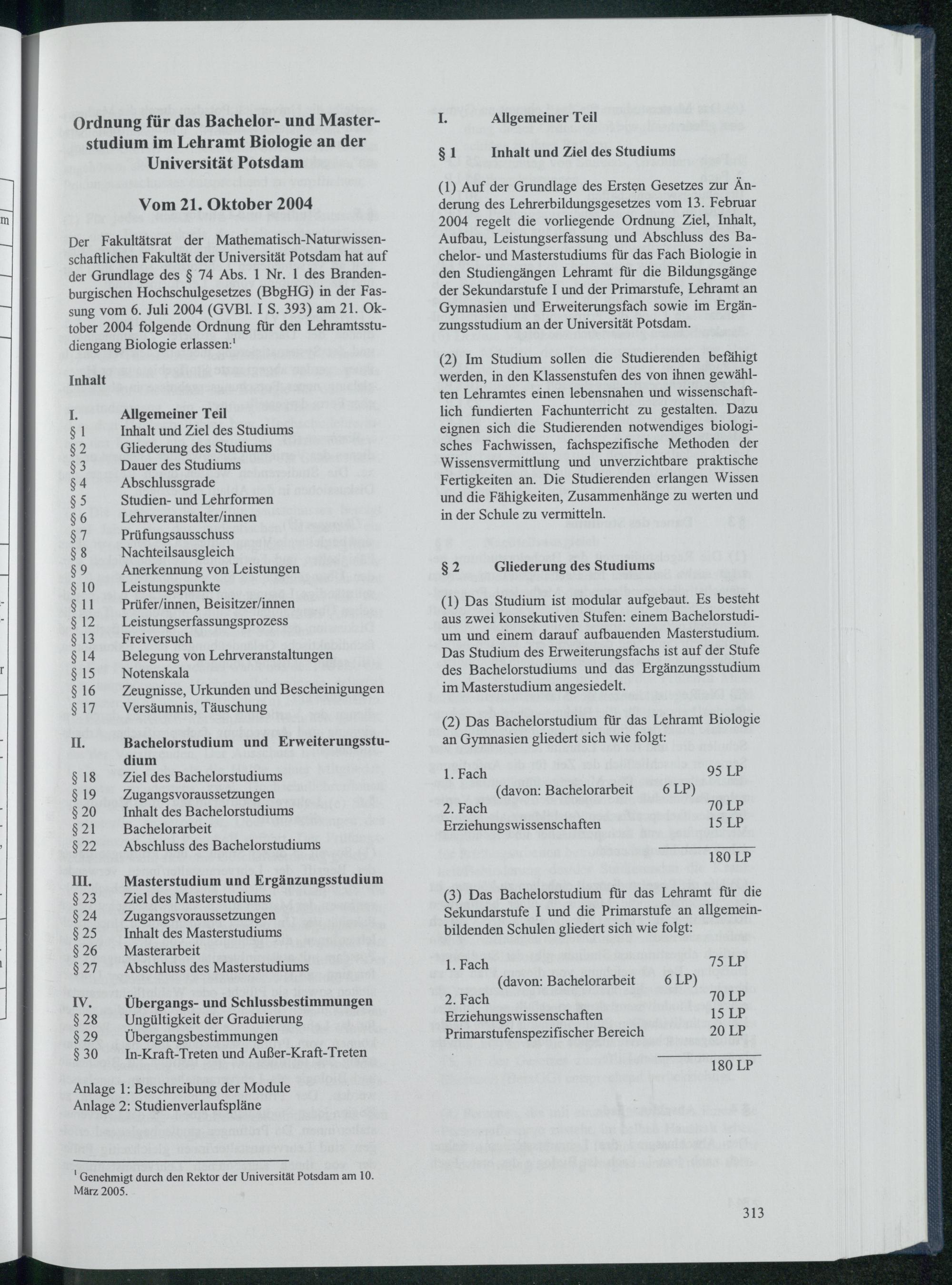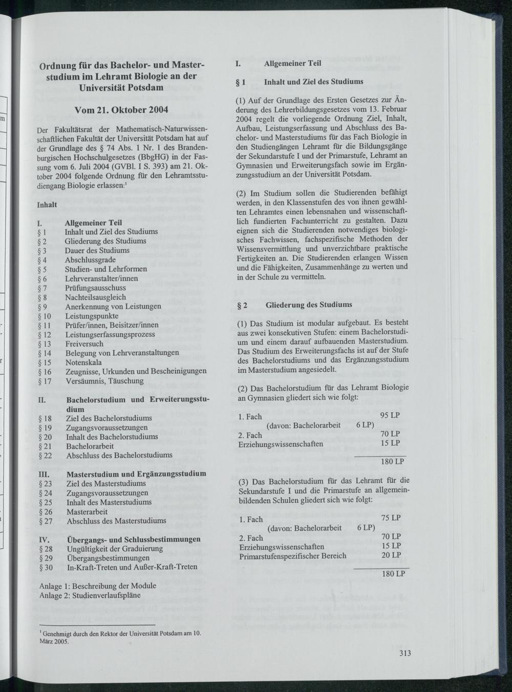 Ordnung für das Bachelor- und Masterstudium im Lehramt Biologie an der Universität...