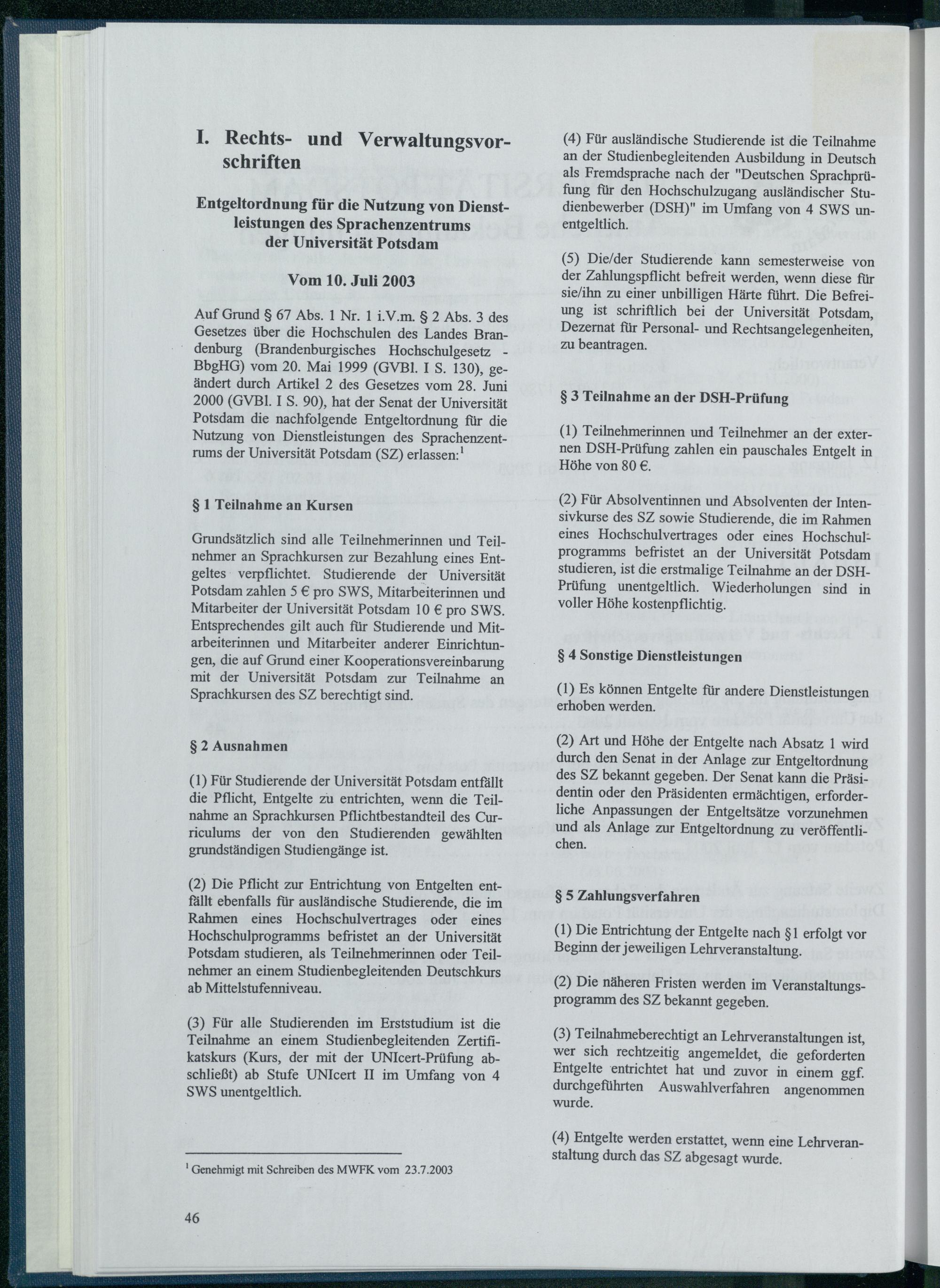 Entgeltordnung für die Nutzung von Dienstleistungen des Sprachenzentrums der Universität...