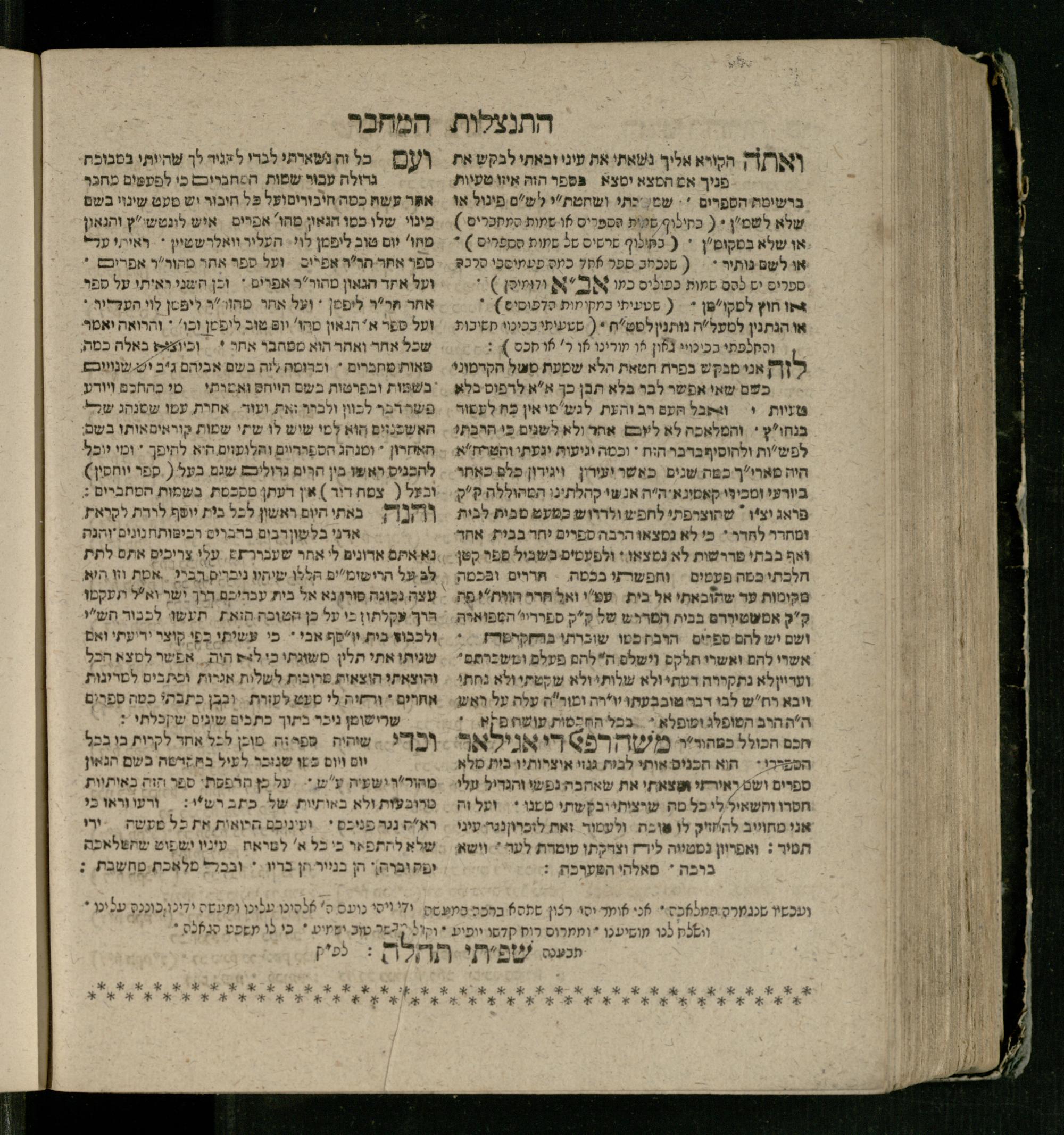 Ḥeleḳ rishon (1806)lifne neʿarim ṿe-ḳetanim asher ṭaraḥ yaga ṿe-asaf Shabtai Meshorer Bas mi-PragḤeleḳ rishon (1806)לפני נערים וקטנים אשר טרח יגע ואסף שבתי משורר בס מפראג