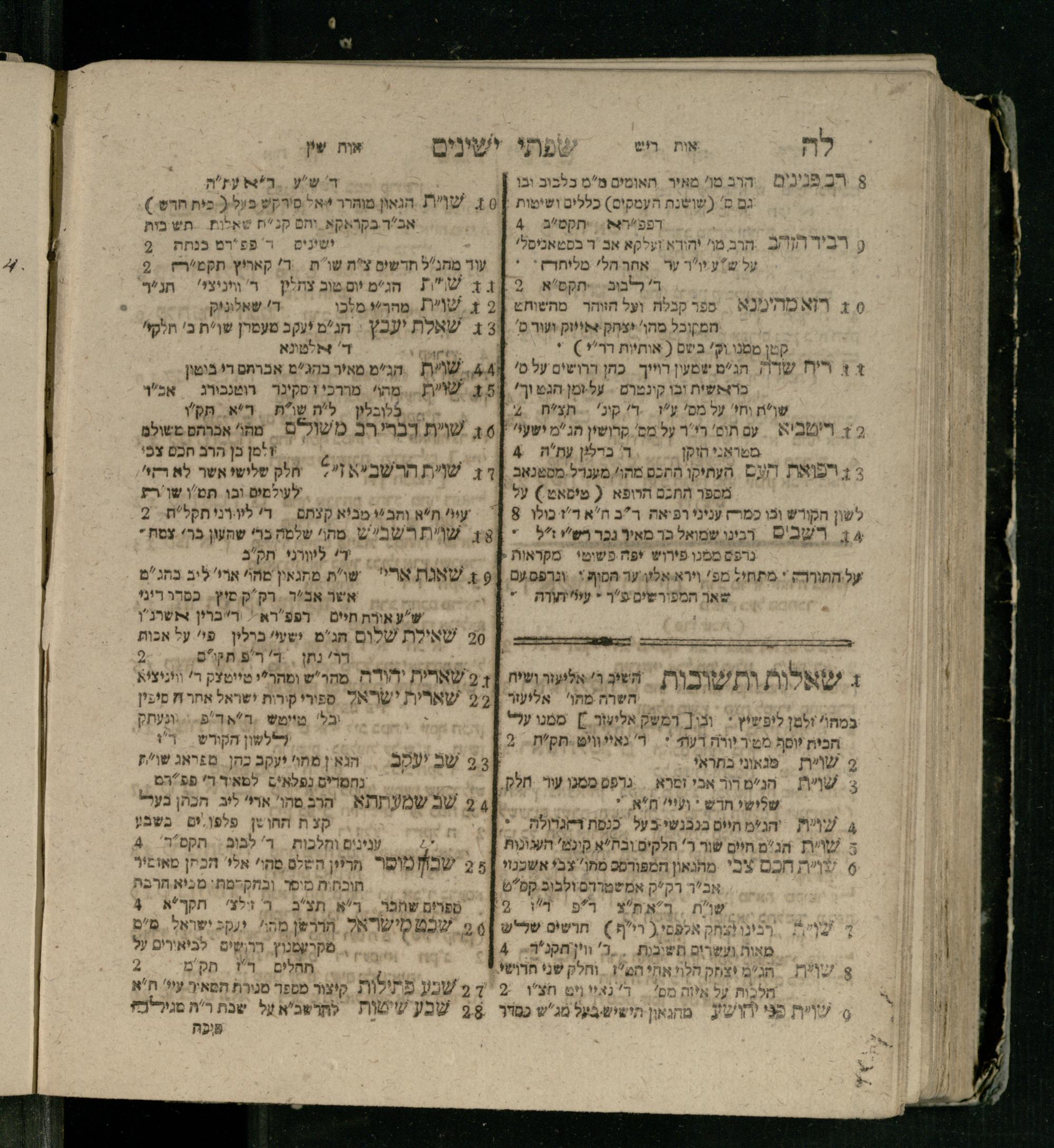 Ḥeleḳ sheni (1806)ʿal mispar ha-sefarim ... asher lo hitpaḳdu be-ḥeleḳ ha-rishon ... ṿe-gam ... ha-sefarim ha-ḥadashim le-mi-yom tom ha-sefer ha-rishon ṿe-ʿad ʿatah mo.ha-r.R. Uri Tsevi Rabin ShṭainḤeleḳ sheni (1806)על מספר הספרים ... אשר לא התפקדו בחלק הראשון ... וגם ... הספרים החדשים ... למיום תום הספר הראשון ועד עתה מוהר''ר אורי צבי רבין שטיין