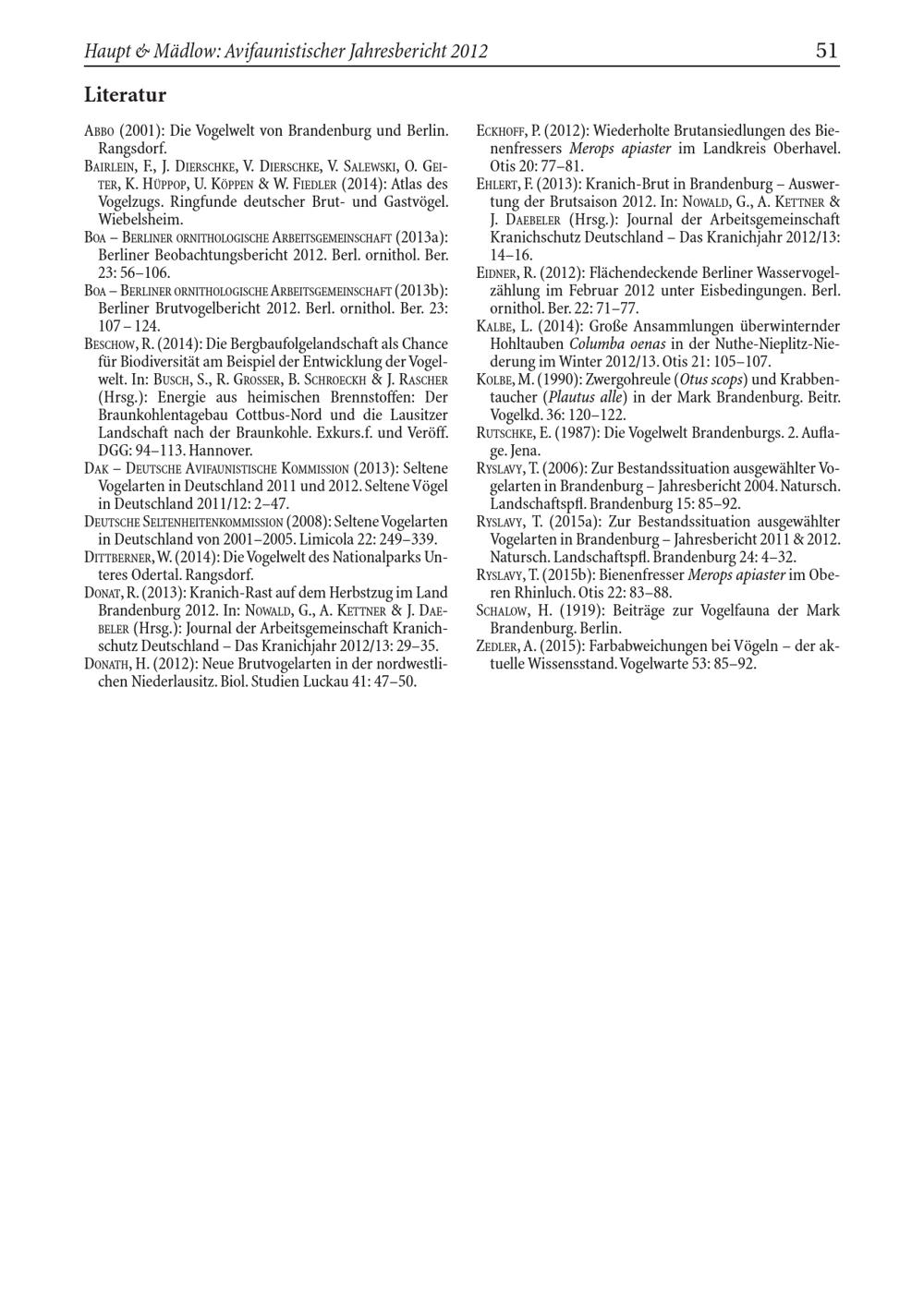 Hartmut Haupt & Wolfgang Mädlow: Avifaunistischer Jahresbericht für Brandenburg und...