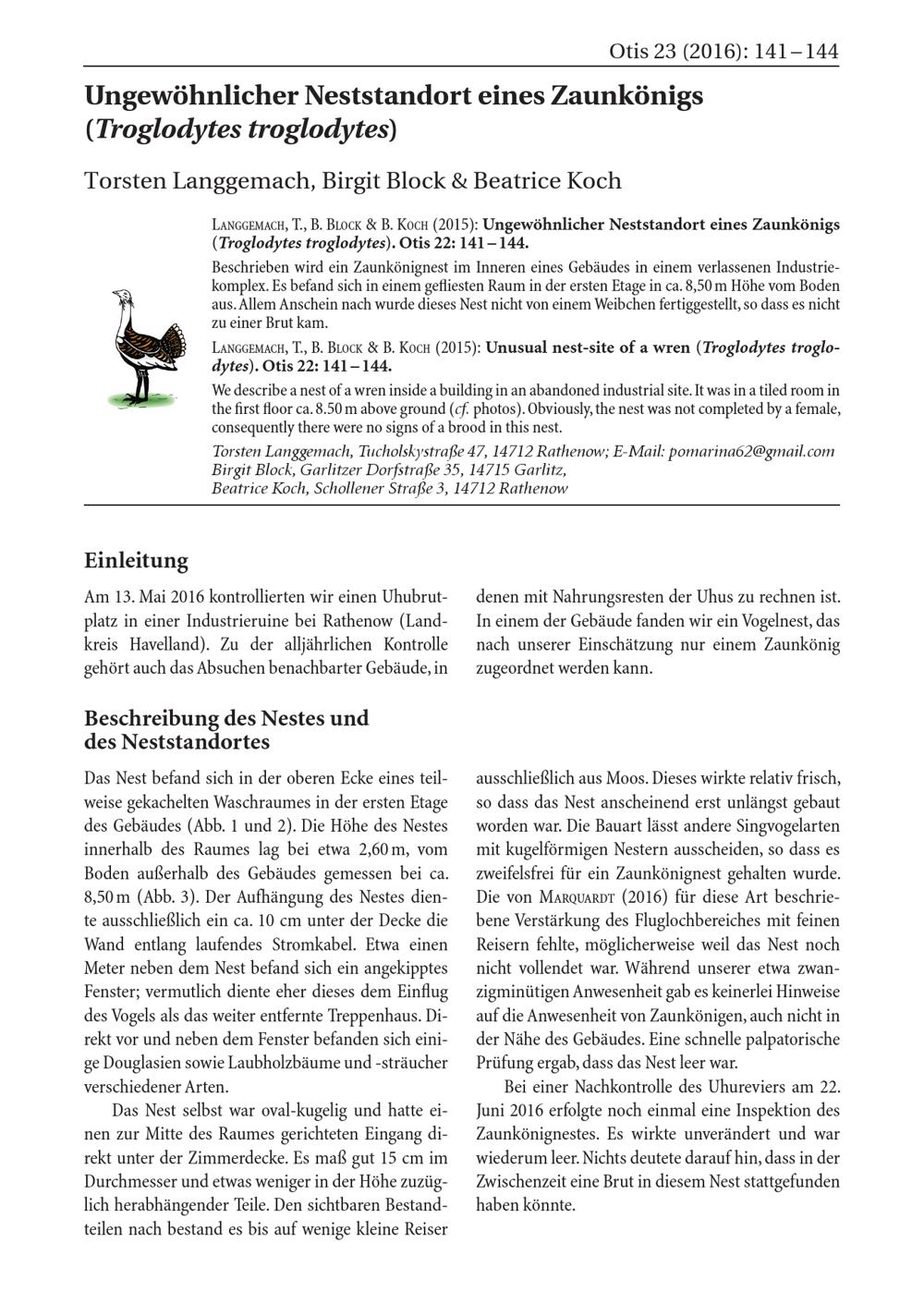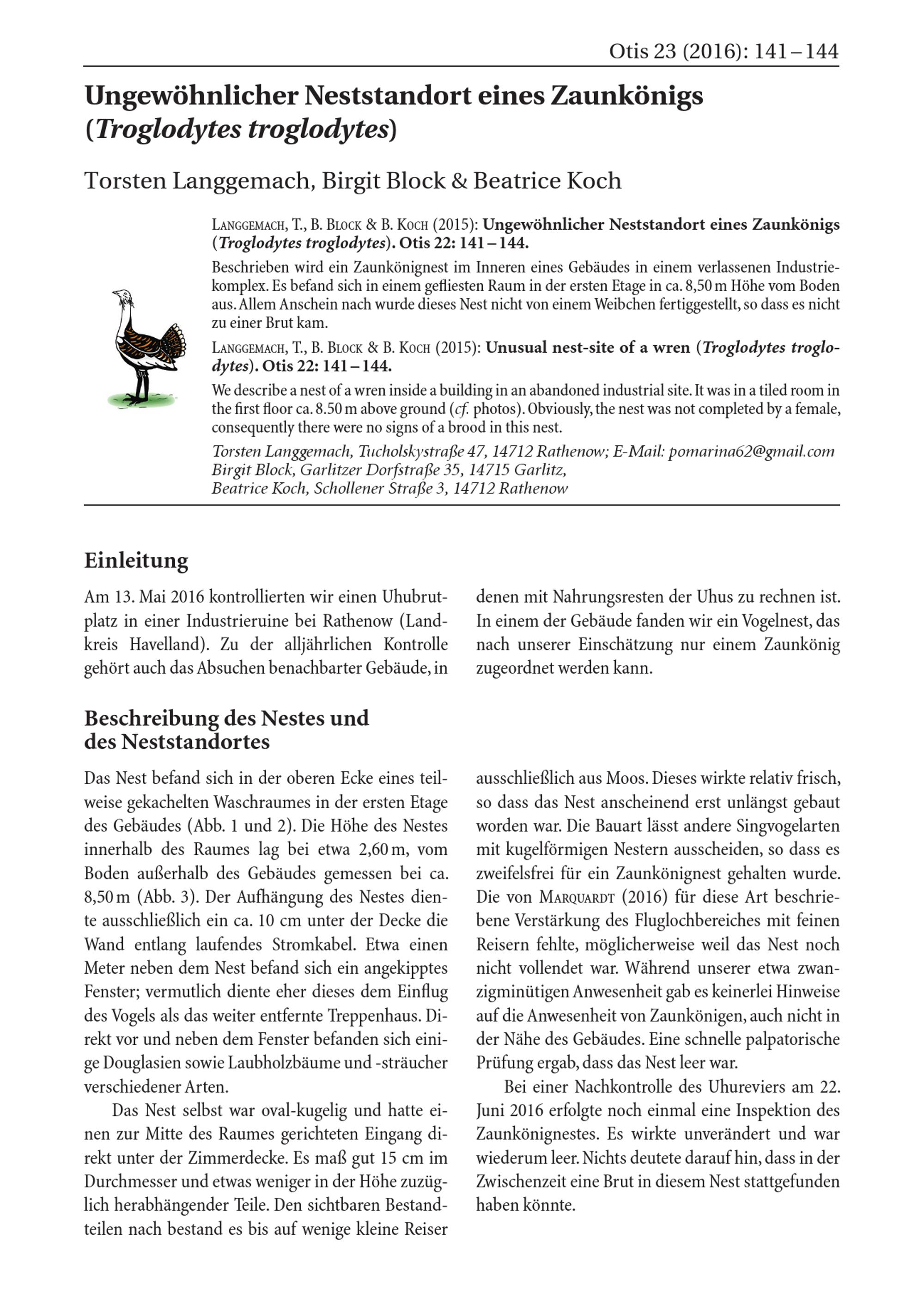 Torsten Langgemach, Birgit Block & Beatrice Koch: Ungewöhnlicher Neststandort eines...