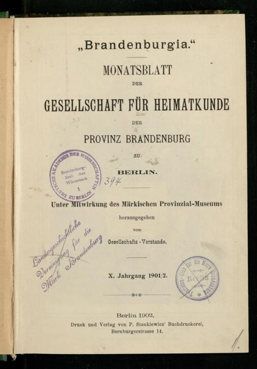Monatsblatt der Gesellschaft für Heimatkunde und Heimatschutz in der Mark Brandenburg,...