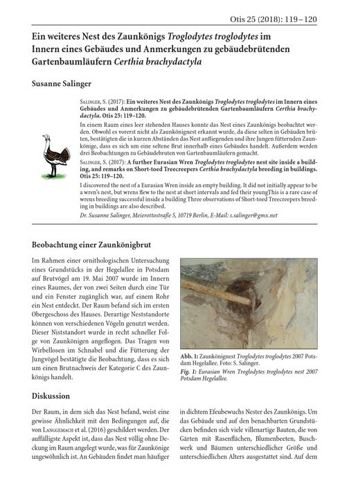 Susanne Salinger: Ein weiteres Nest des Zaunkönigs Troglodytes troglodytes im Innern...