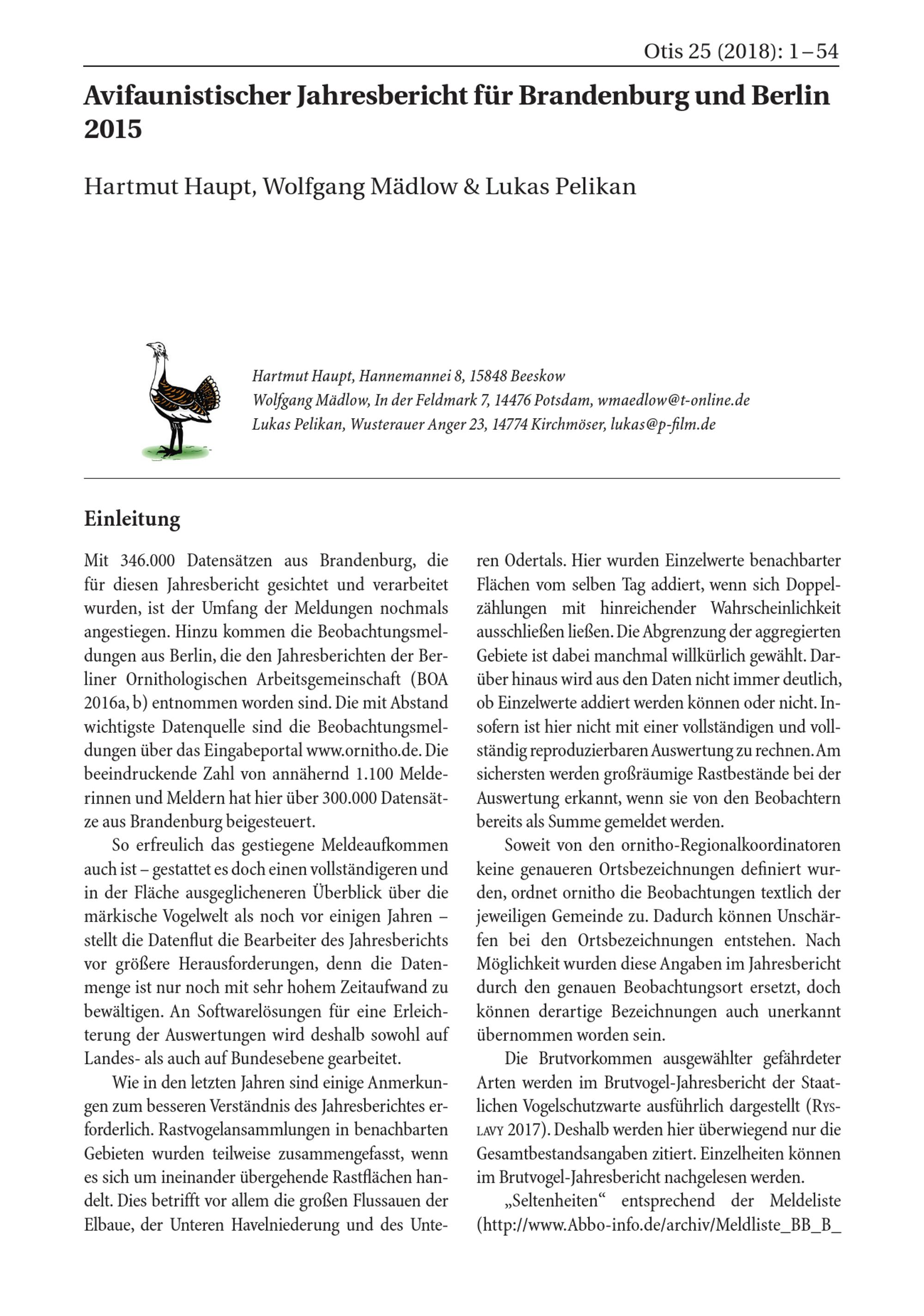 Hartmut Haupt, Wolfgang Mädlow & Lukas Pelikan: Avifaunistischer Jahresbericht für...