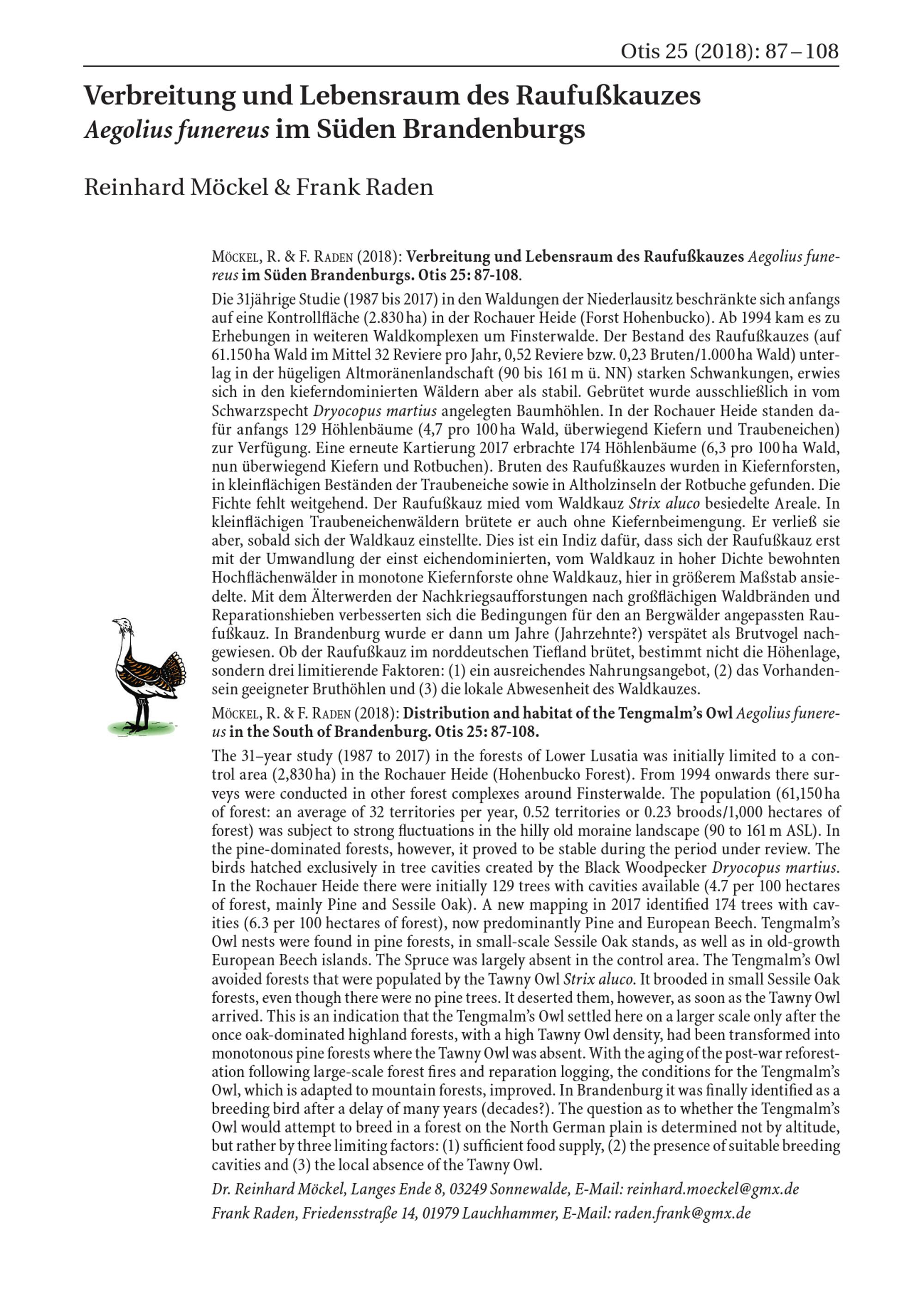 Reinhard Möckel & Frank Raden: Verbreitung und Lebensraum des Raufußkauzes Aegolius...