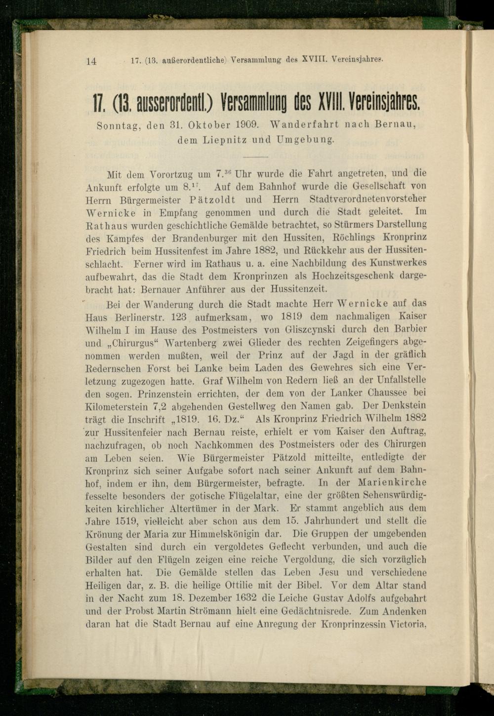 17. 13. ausserordentl.) Versammlung des XVIII. Vereinsjahres.
