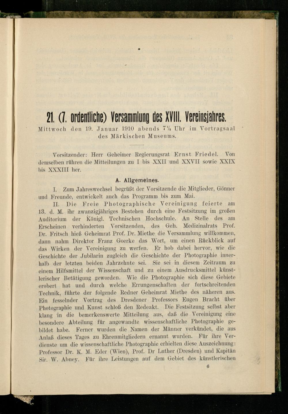 21. (7. ordentliche) Versammlung des XVIII. Vereinsjahres.