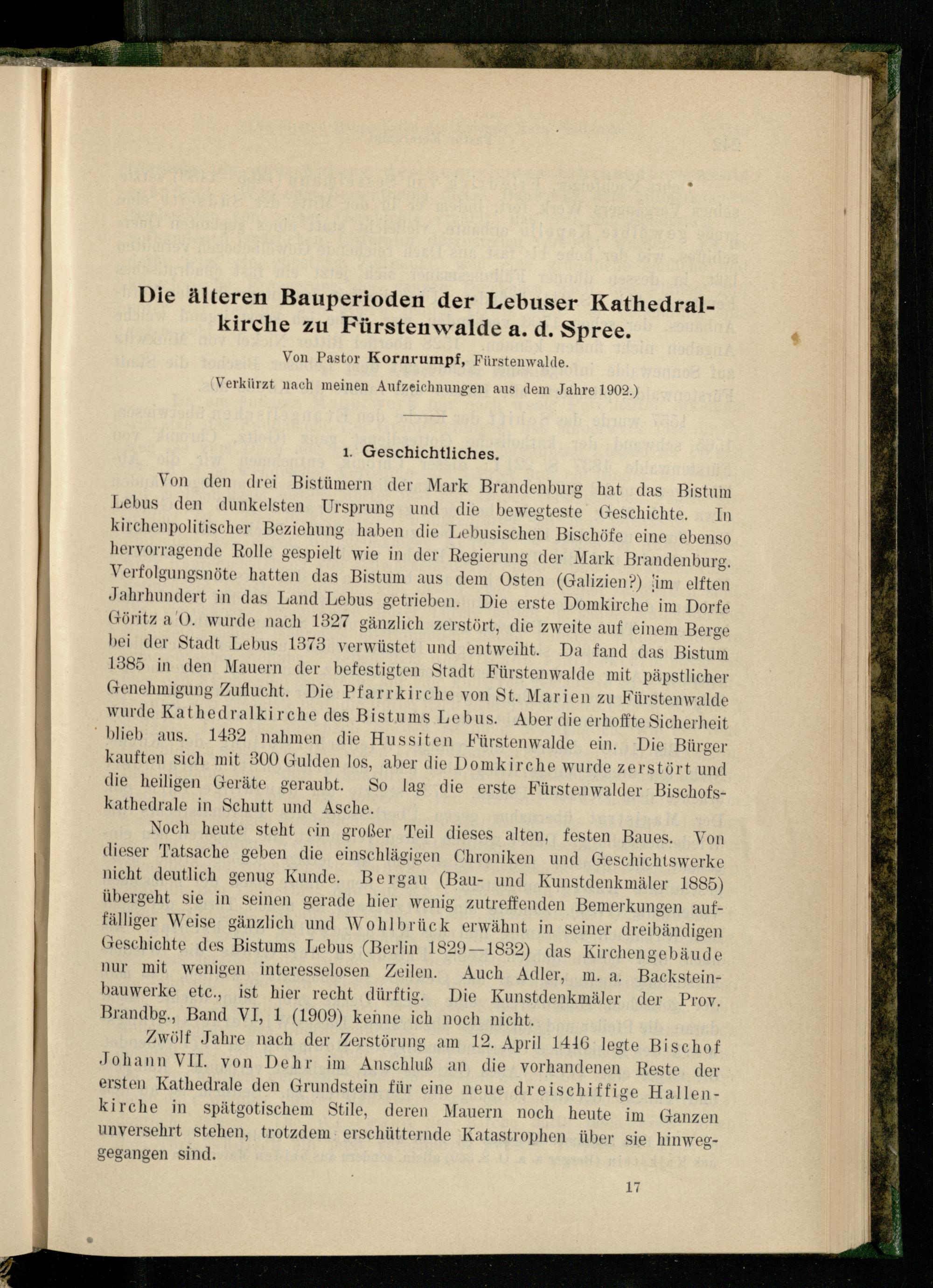 Kornrumpf: Die älteren Bauperioden der Lebuser Kathedralkirche zu Fürstenwalde a....