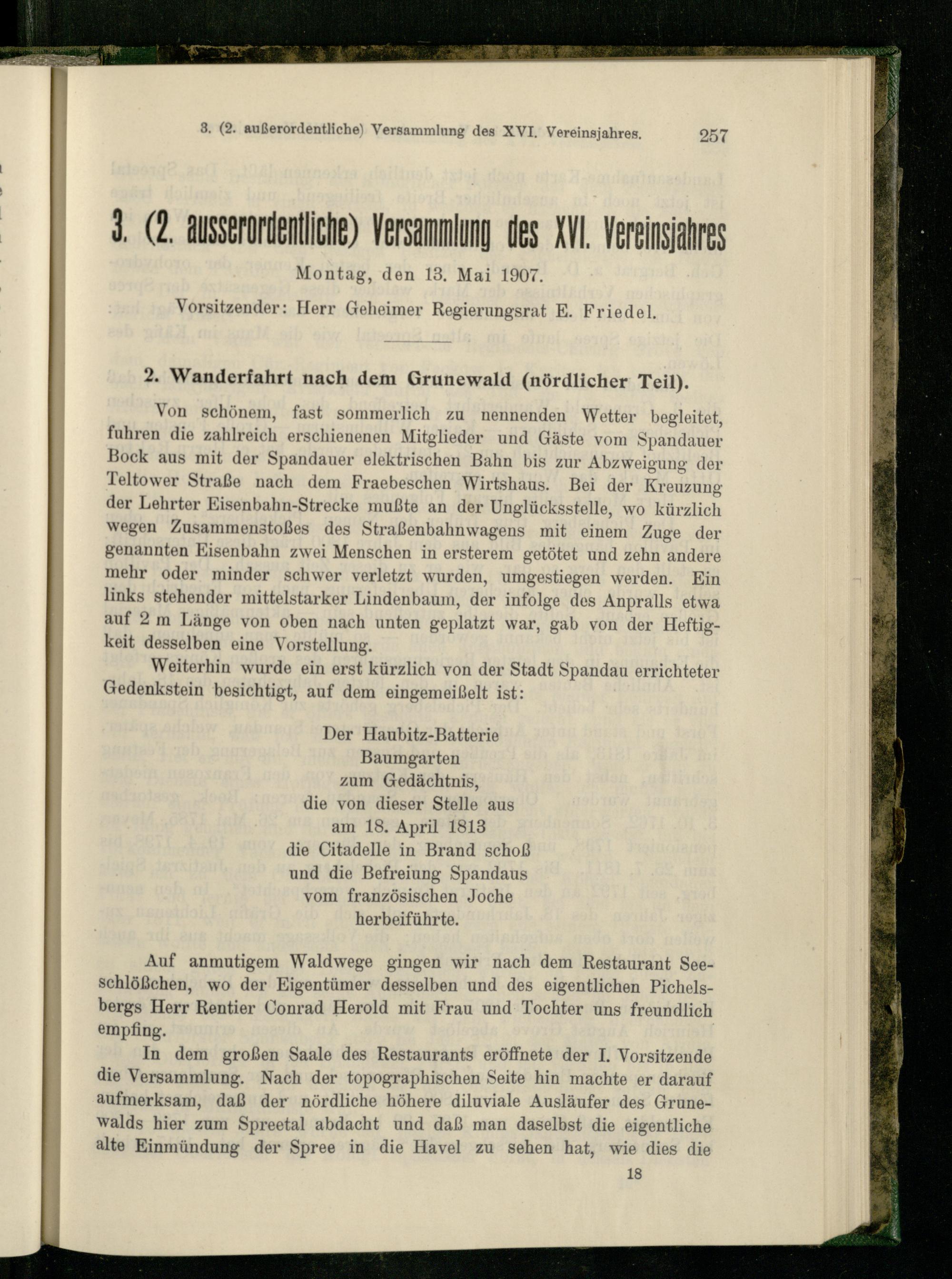 3. (2. ausserordentliche) Versammlung des XVI. Vereinsjahres.