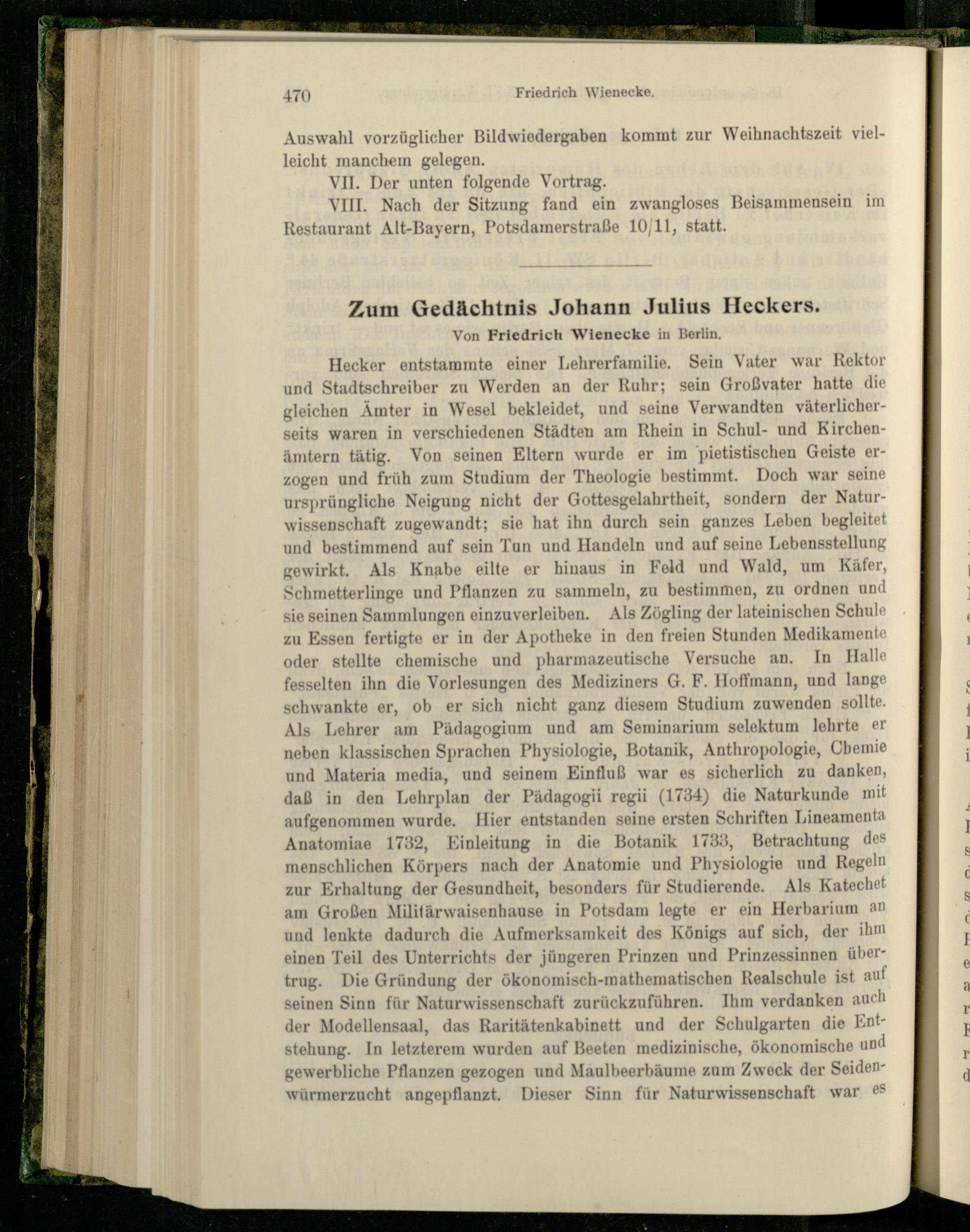 Friedrich Wienecke: Zum Gedächtnis Johann Julius Heckers.