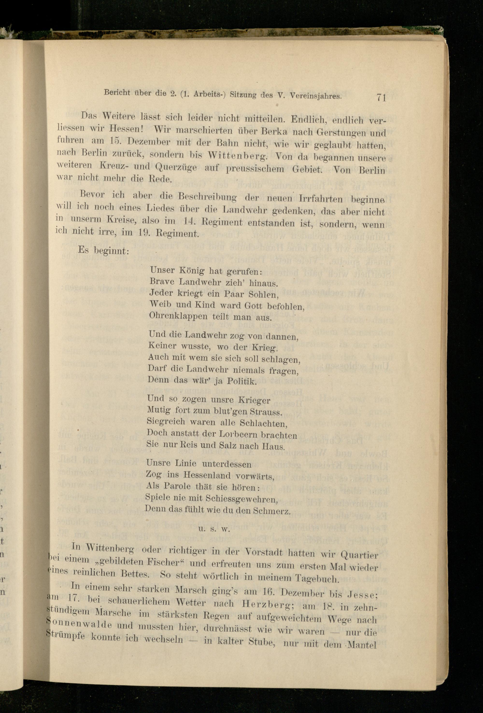 Bericht über die 2. (1. Arbeits-) Sitzung des V. Vereinsjahres