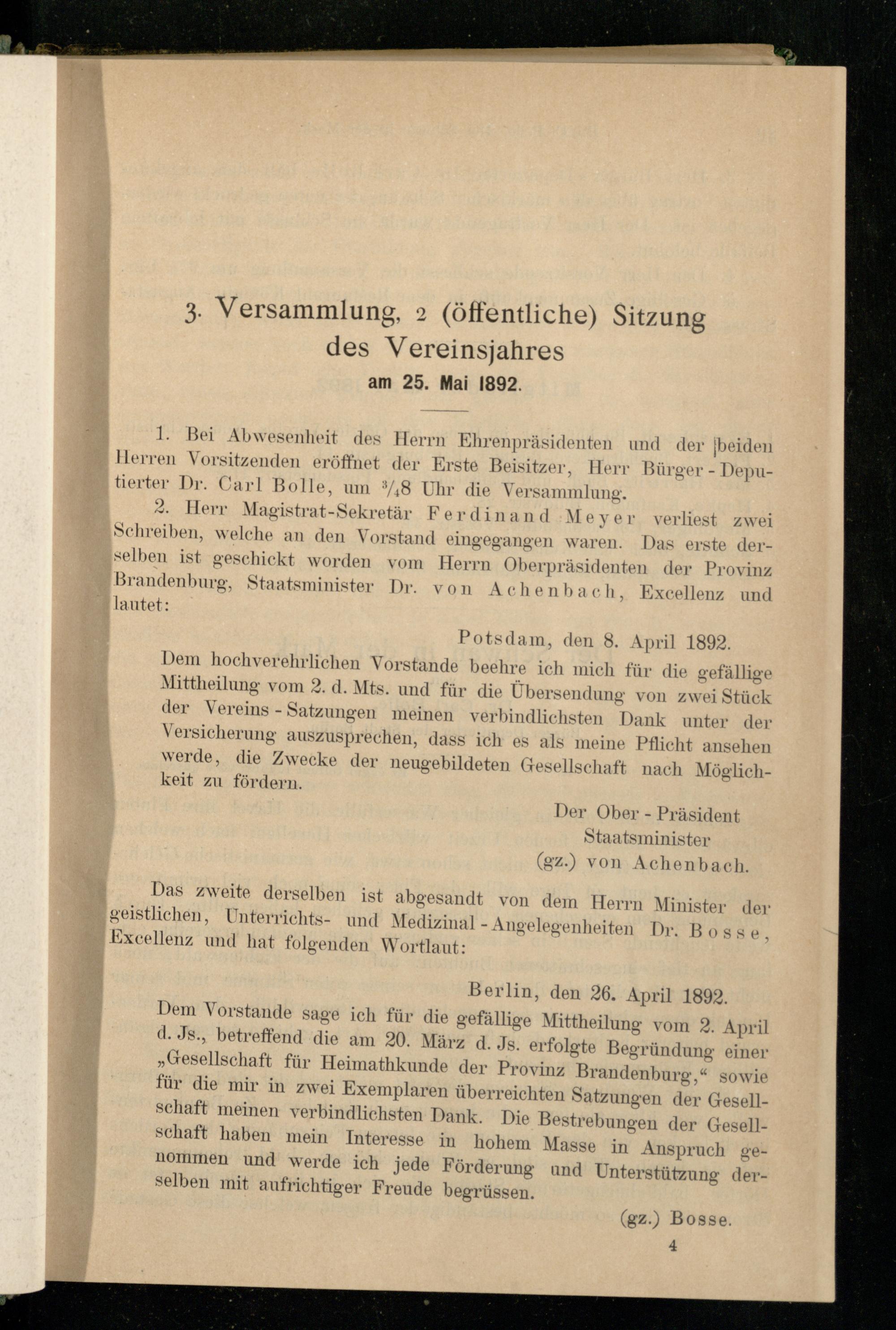 3. Versammlung, 2 (öffentliche) Sitzung des Vereinsjahres am 25. Mai 1892.