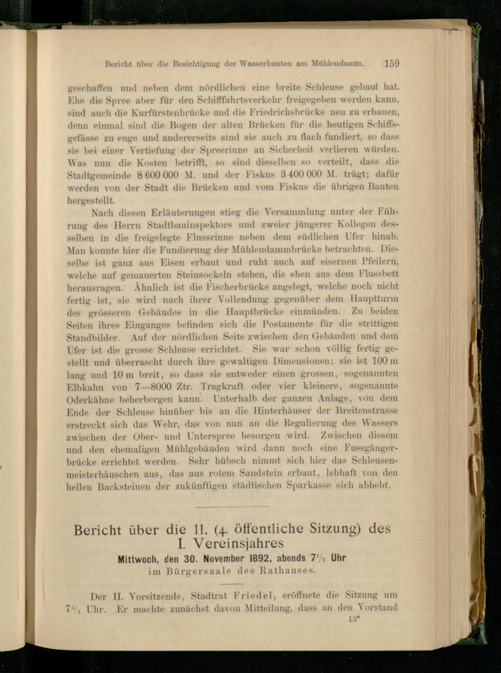 Bericht über die 11. (4. öffentliche Sitzung) des I. Vereinsjahres
