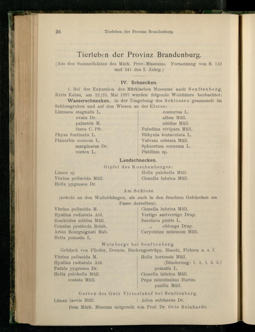 Tierleben der Provinz Brandenburg.