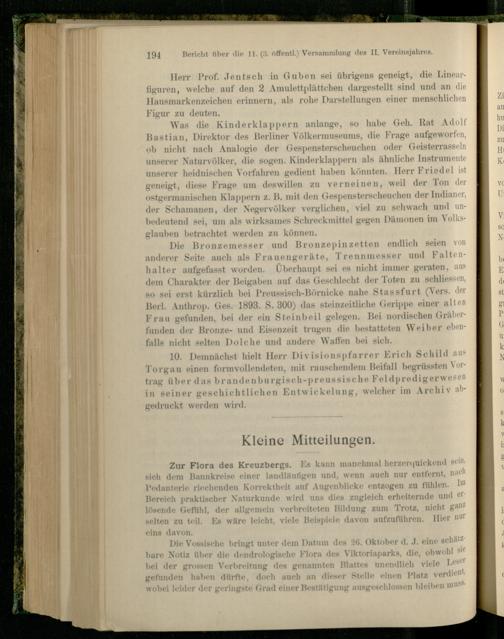 Carl Bolle, Zache, Paul Schubart, E. Friedel: Kleine Mitteilungen.