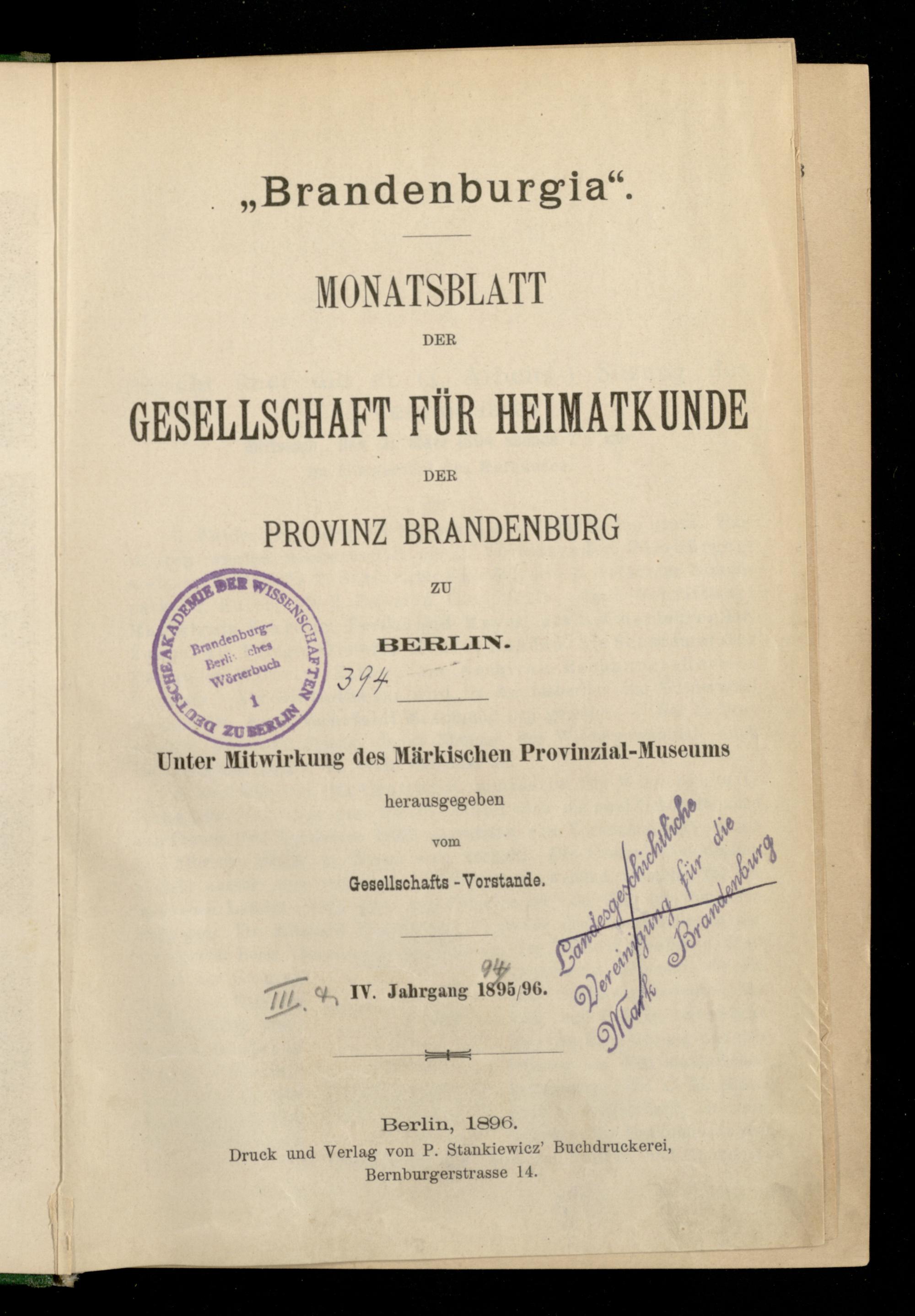 Monatsblatt der Gesellschaft für Heimatkunde und Heimatschutz in der Mark Brandenburg,...
