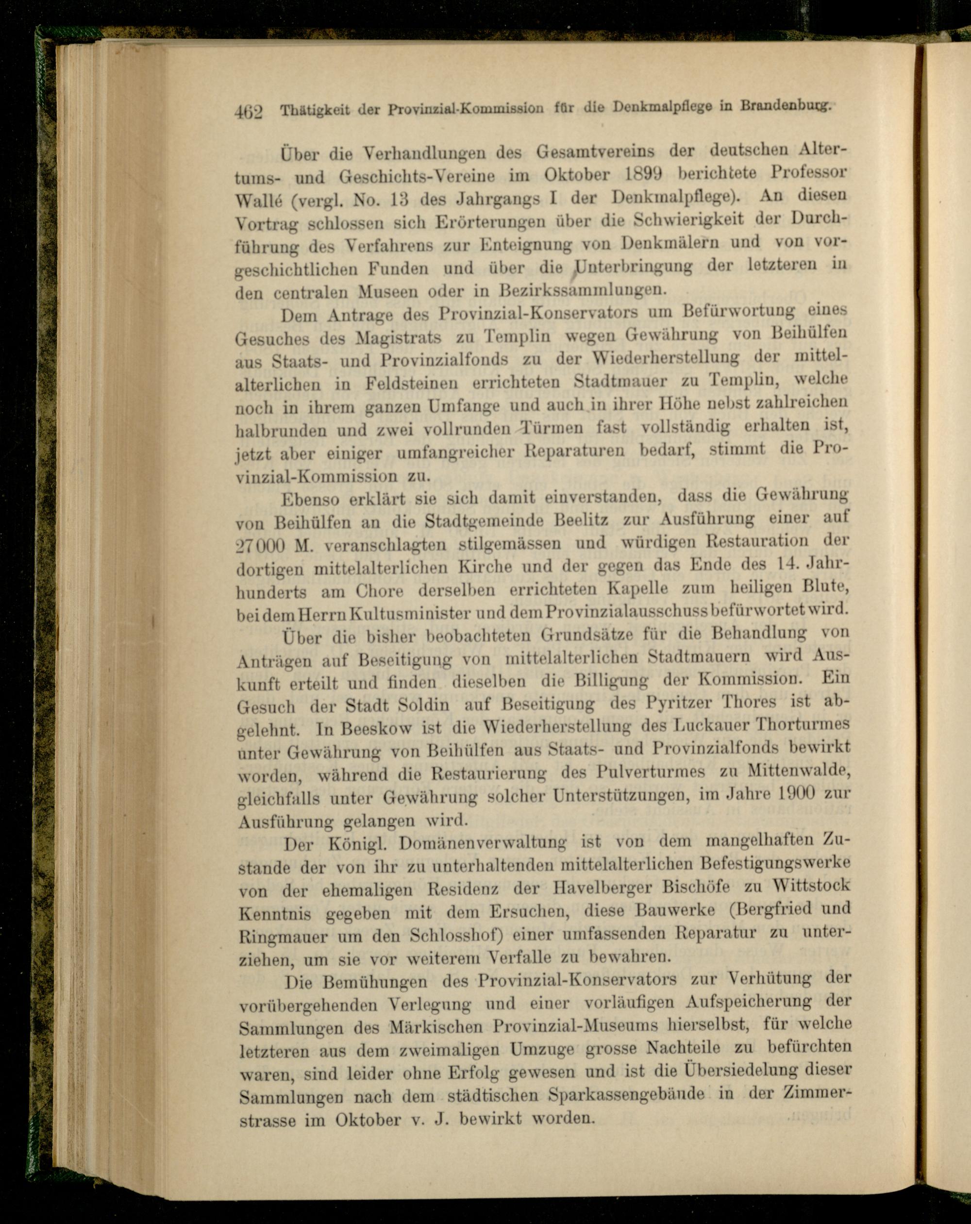 Thätigkeit der Provinzial-Kommission für die Denkmalpflege in Brandenburg.
