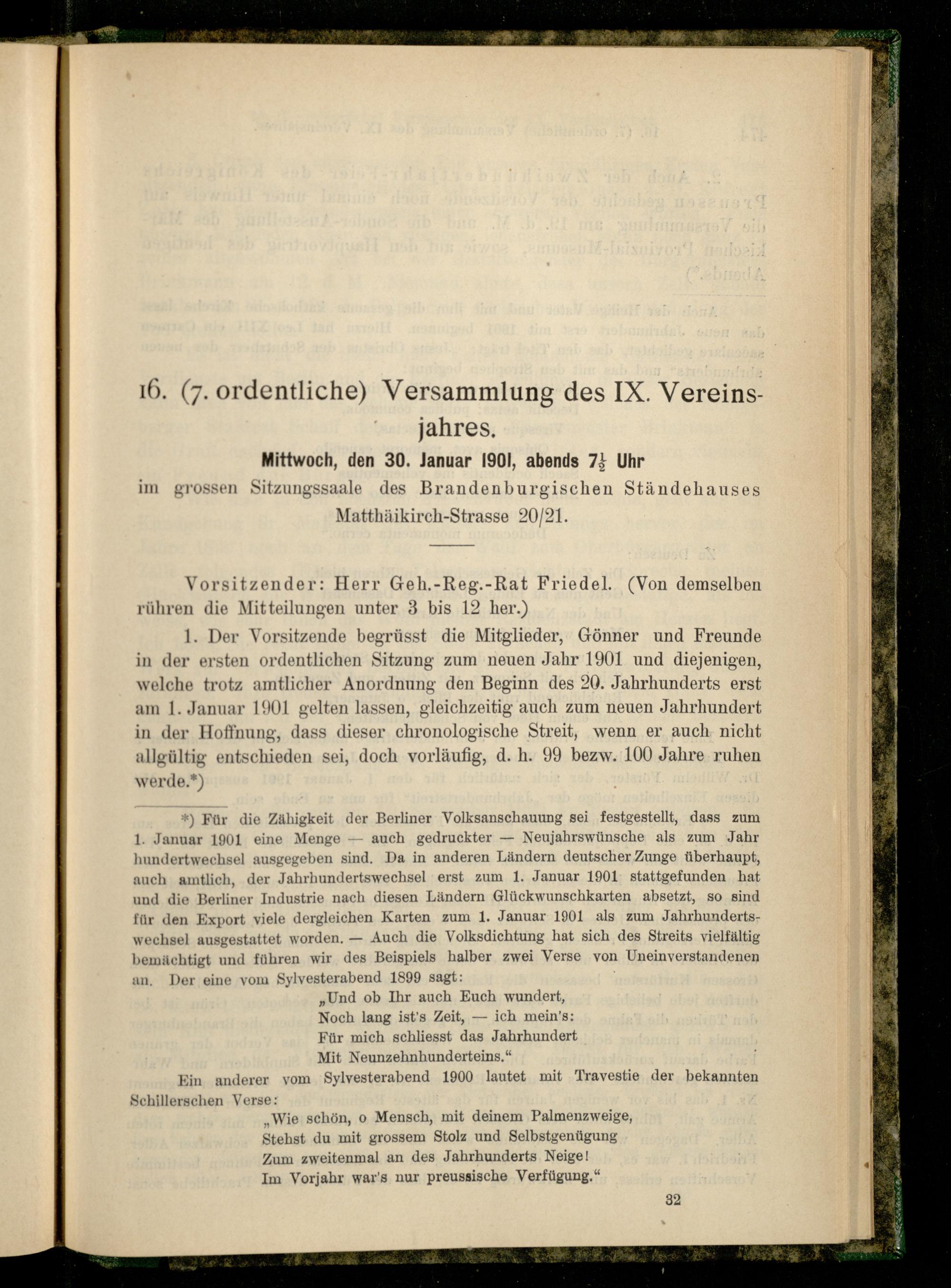 16. (7. ordentliche) Versammlung des IX. Vereinsjahres.