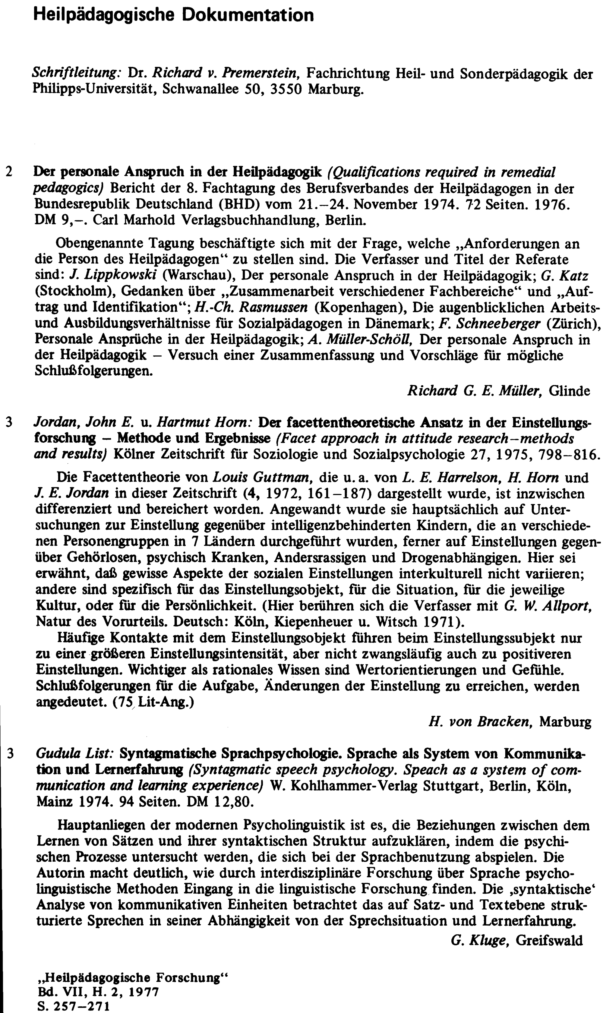 Heilpädagogische Forschung : Zeitschrift für Pädagogik und Psychologie bei Behinderungen