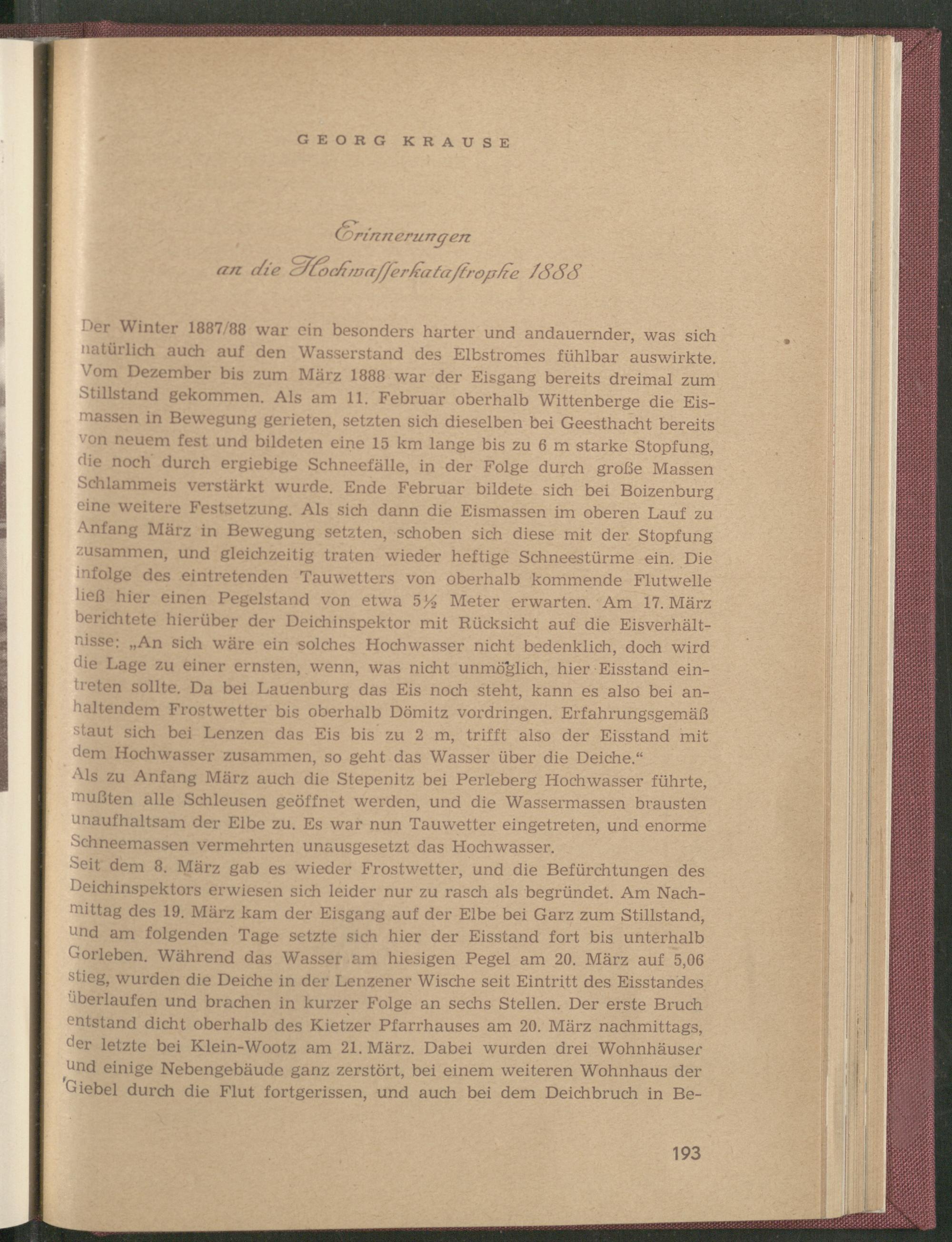 Krause, Georg: Erinnerungen an die Hochwasserkatastrophe 1888.