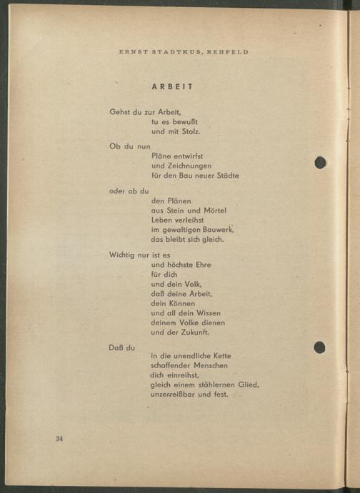 Stadtkus, Ernst: Arbeit [Gedicht, hochdeutsch].