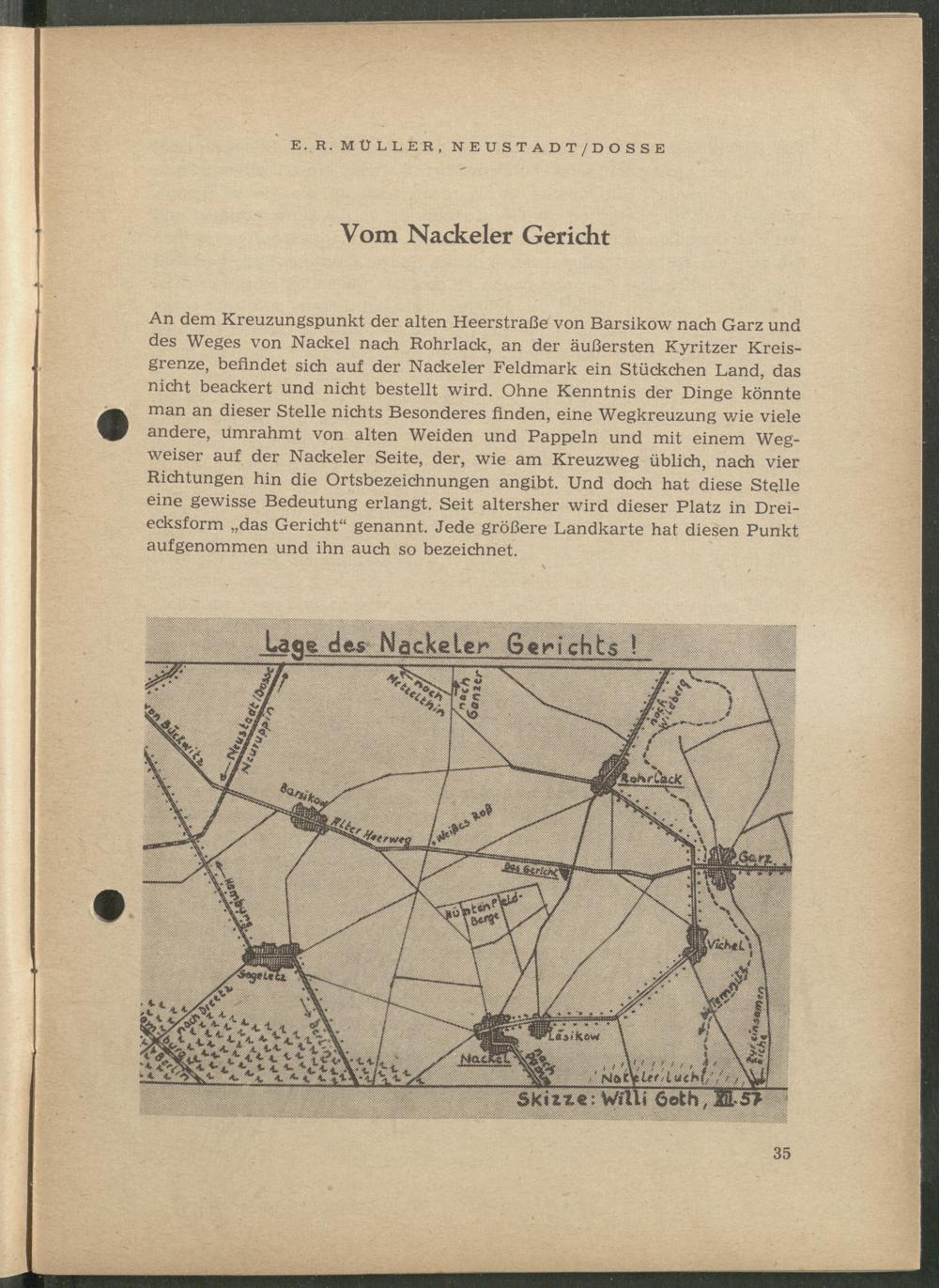 Müller, E[mil] R.: Vom Nackeler Gericht [betr. Hinrichtung einer Kindsmörderin und Begräbnis einer Selbstmörderin 1740 laut Kirchenbuch].