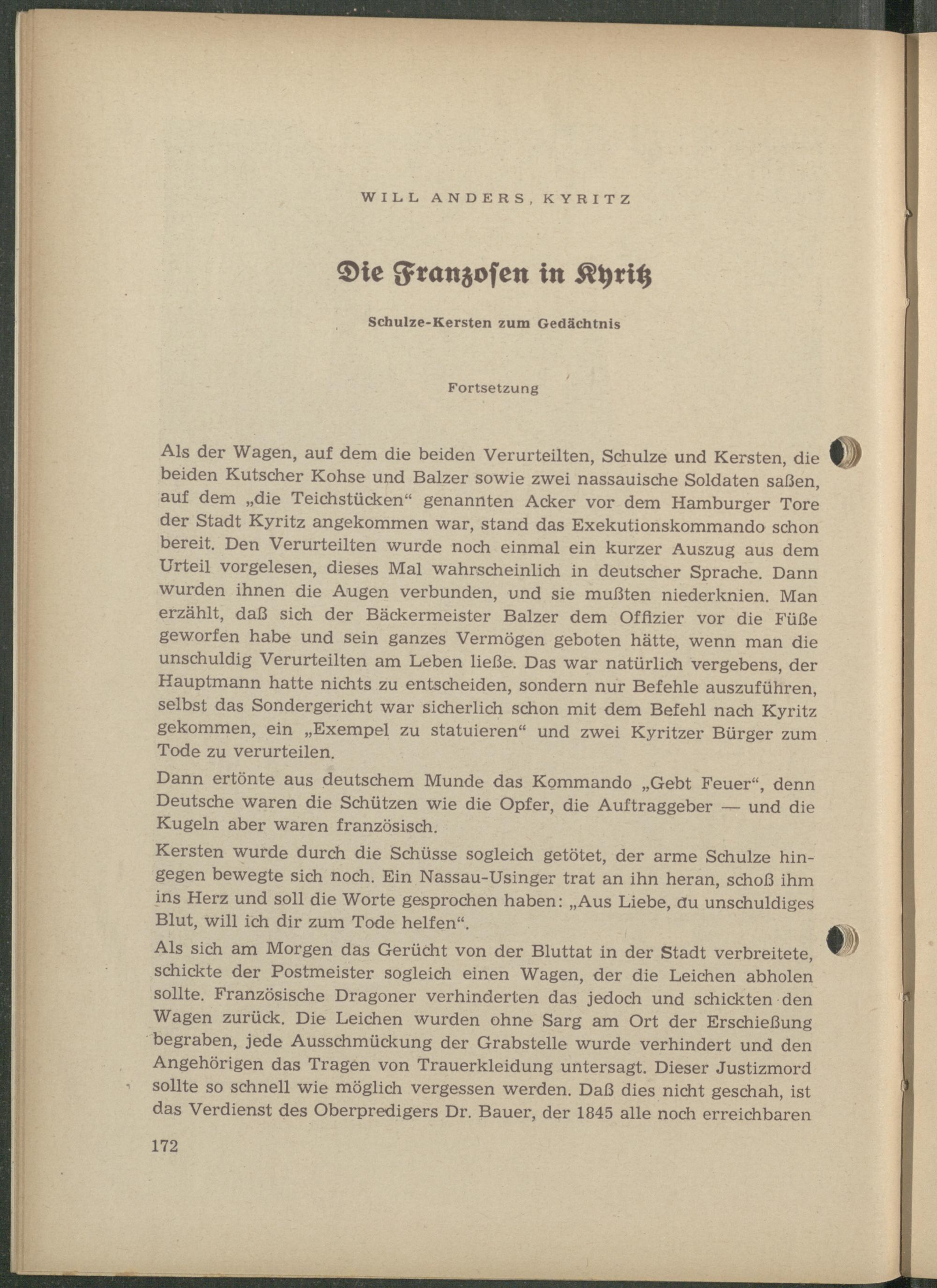 Anders, Will: Die Franzosen in Kyritz. Schulze-Kersten zum Gedächtnis.