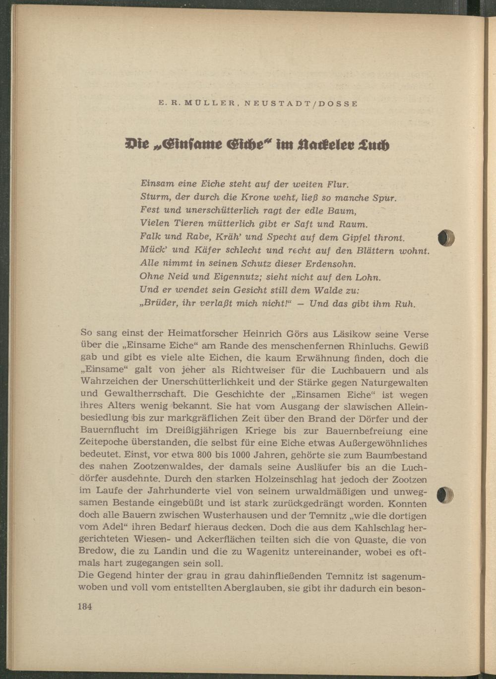 Müller, E[mil] R.: Die „Einsame Eiche“ im Nackeler Luch.