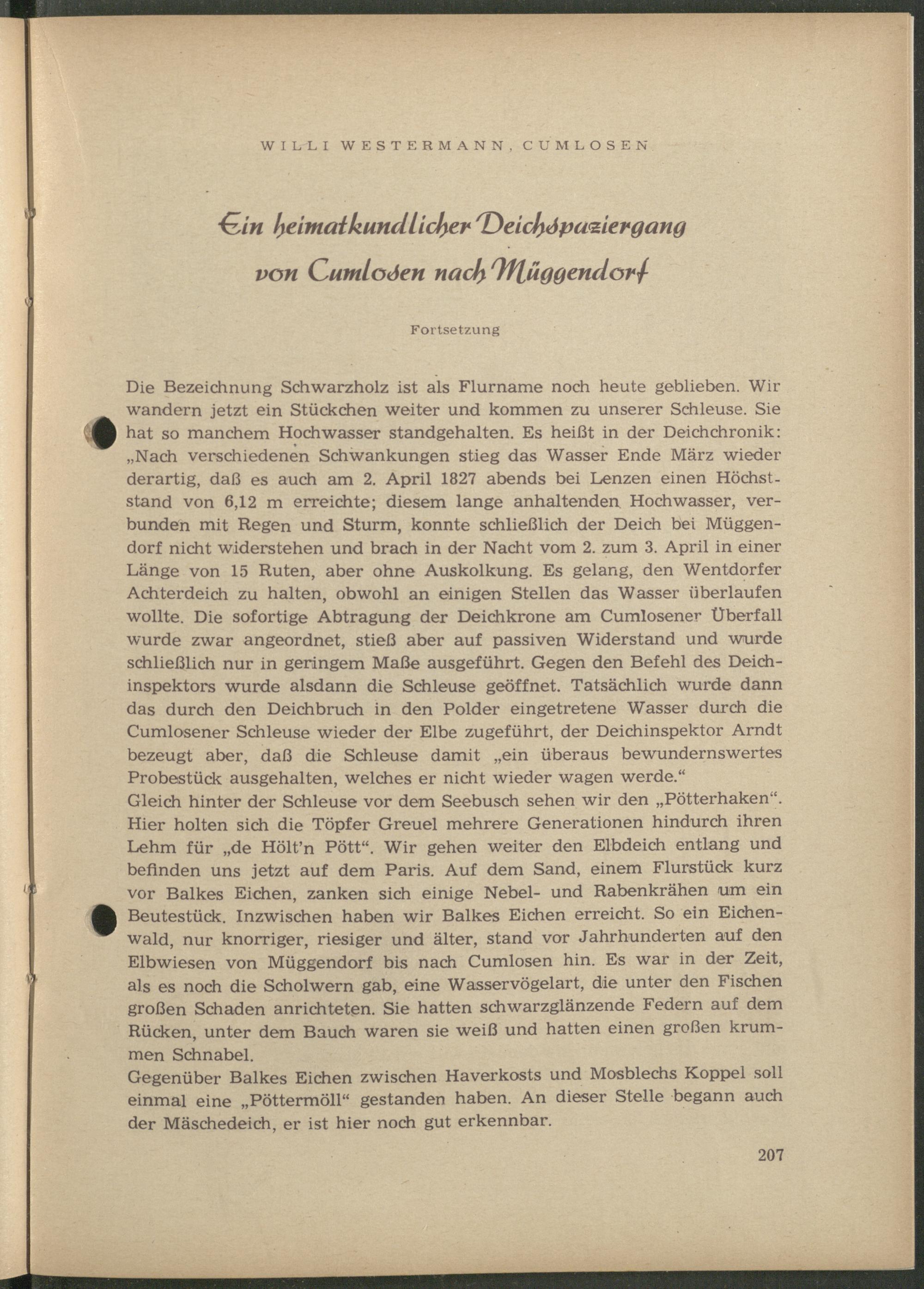 Westermann, Willi: Ein heimatkundlicher Deichspaziergang von Cumlosen nach Müggendorf
