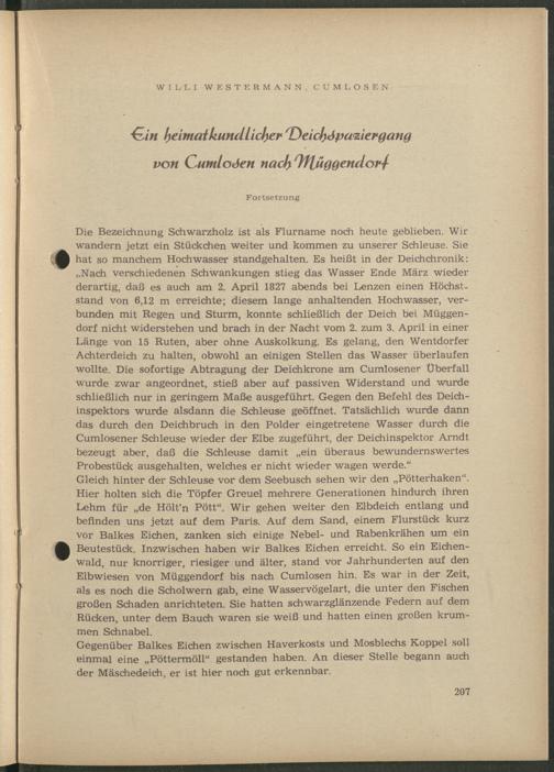 Westermann, Willi: Ein heimatkundlicher Deichspaziergang von Cumlosen nach Mügge...