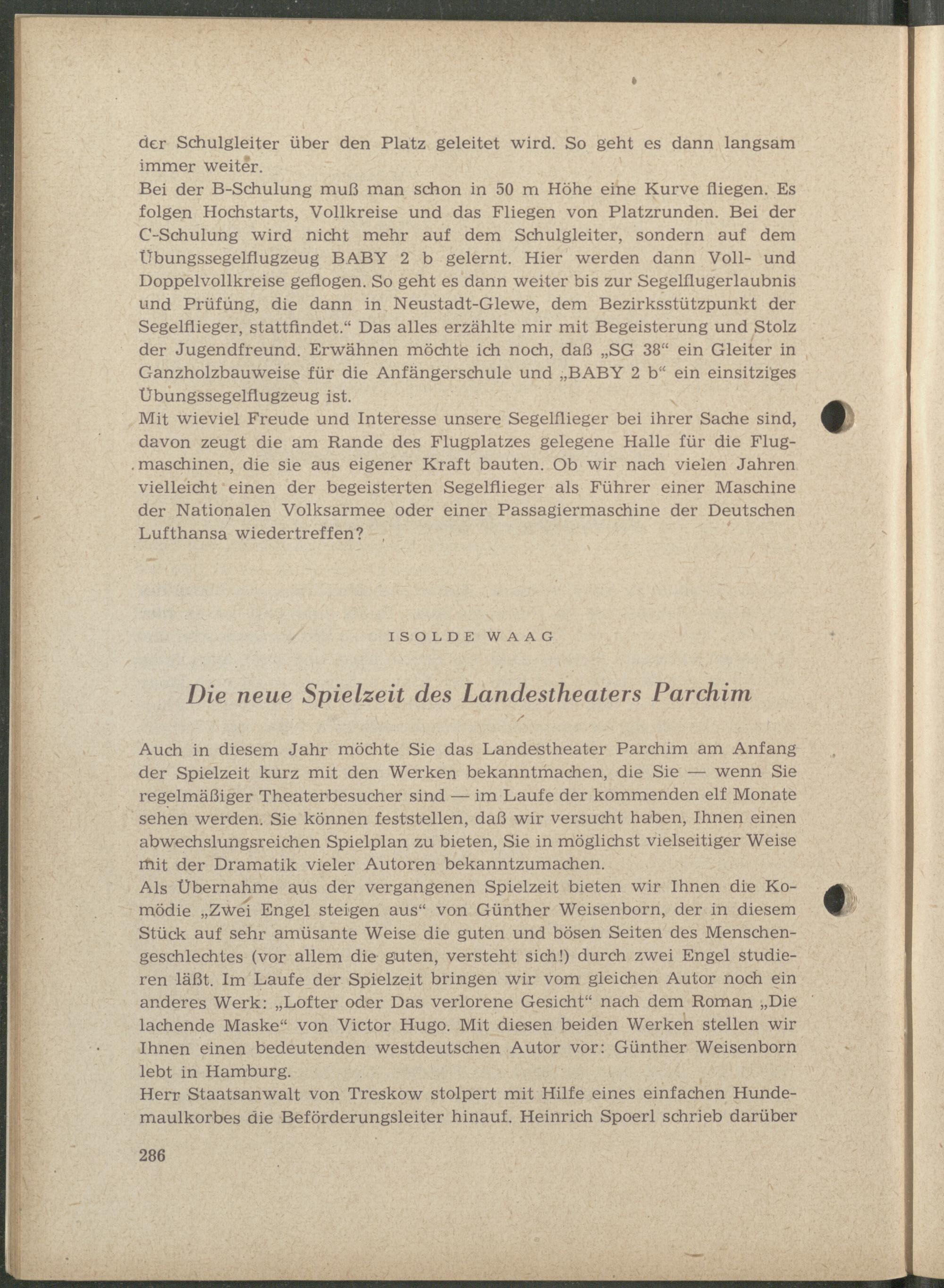 Waag, Isolde: Die neue Spielzeit des Landestheaters Parchim.