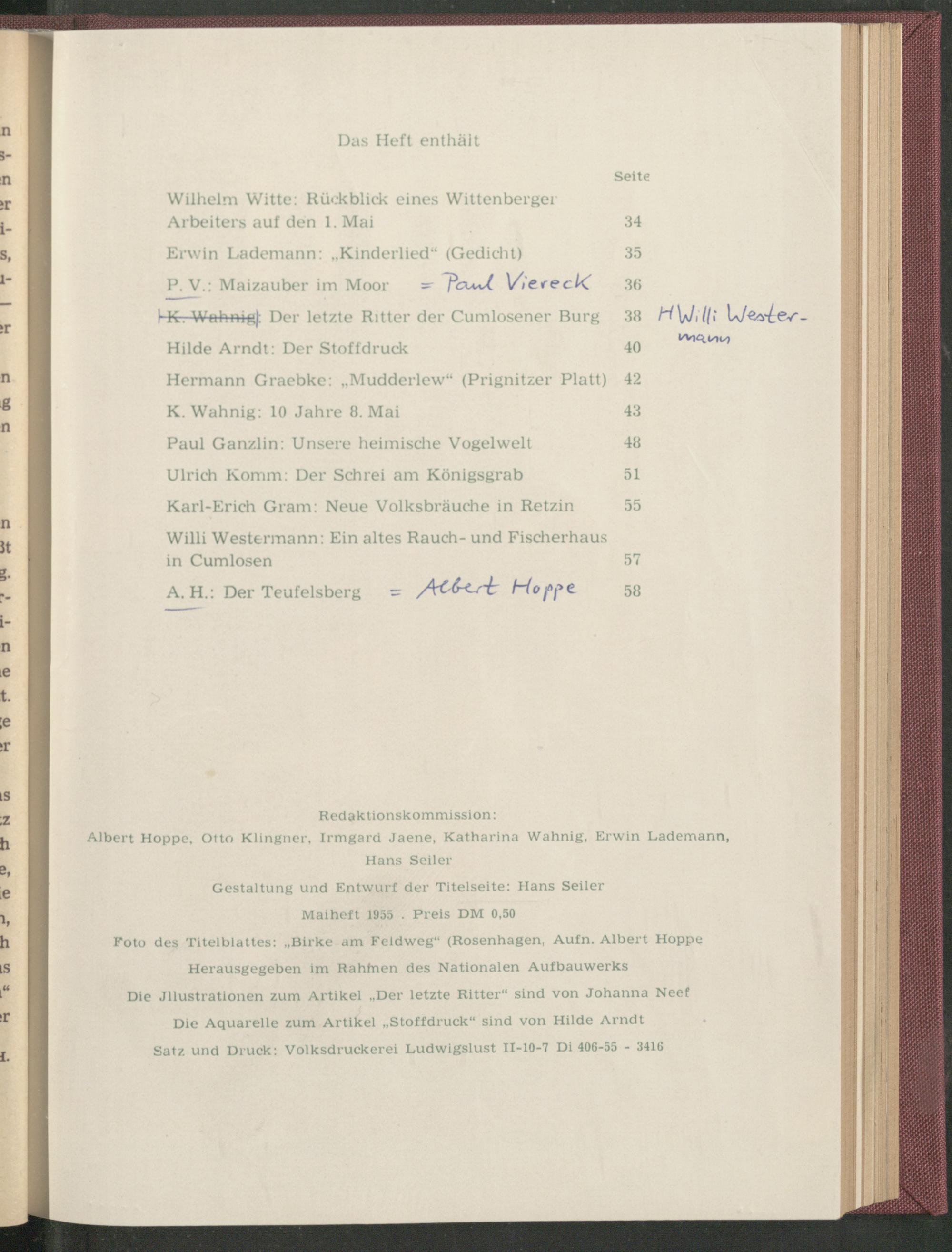 Gram, Karl-Erich: Neue Volksbräuche in Retzin [mit Graphik von Johanna Neef].