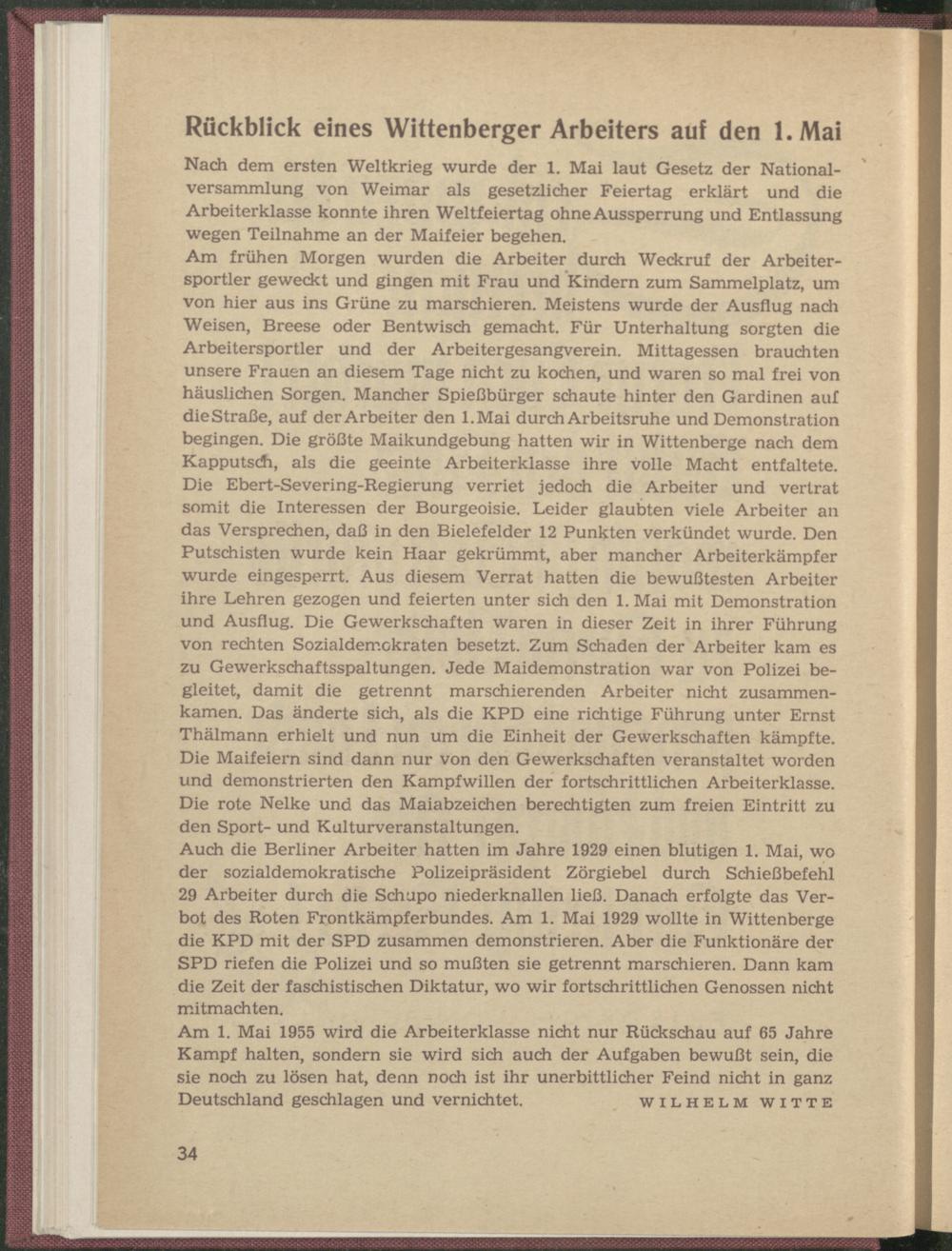 Witte, Wilhelm: Rückblick eines Wittenberger Arbeiters auf den 1. Mai.