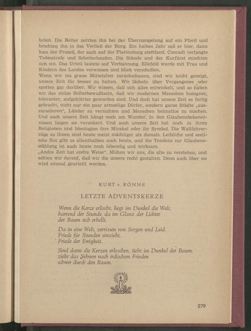 Rönne, Kurt v[on]: Letzte Adventskerze [Gedicht].