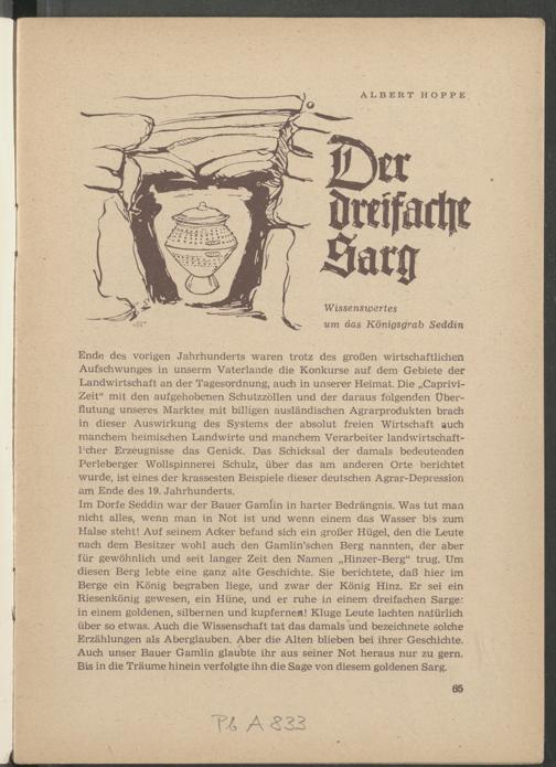 Hoppe, Albert: Der dreifache Sarg. Wissenswertes um das Königsgrab Seddin.