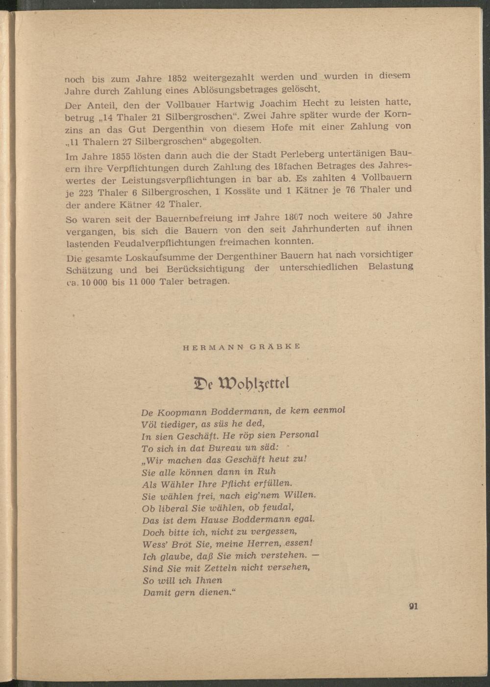 Gräbke [!], Hermann: De Wohlzettel [Gedicht].