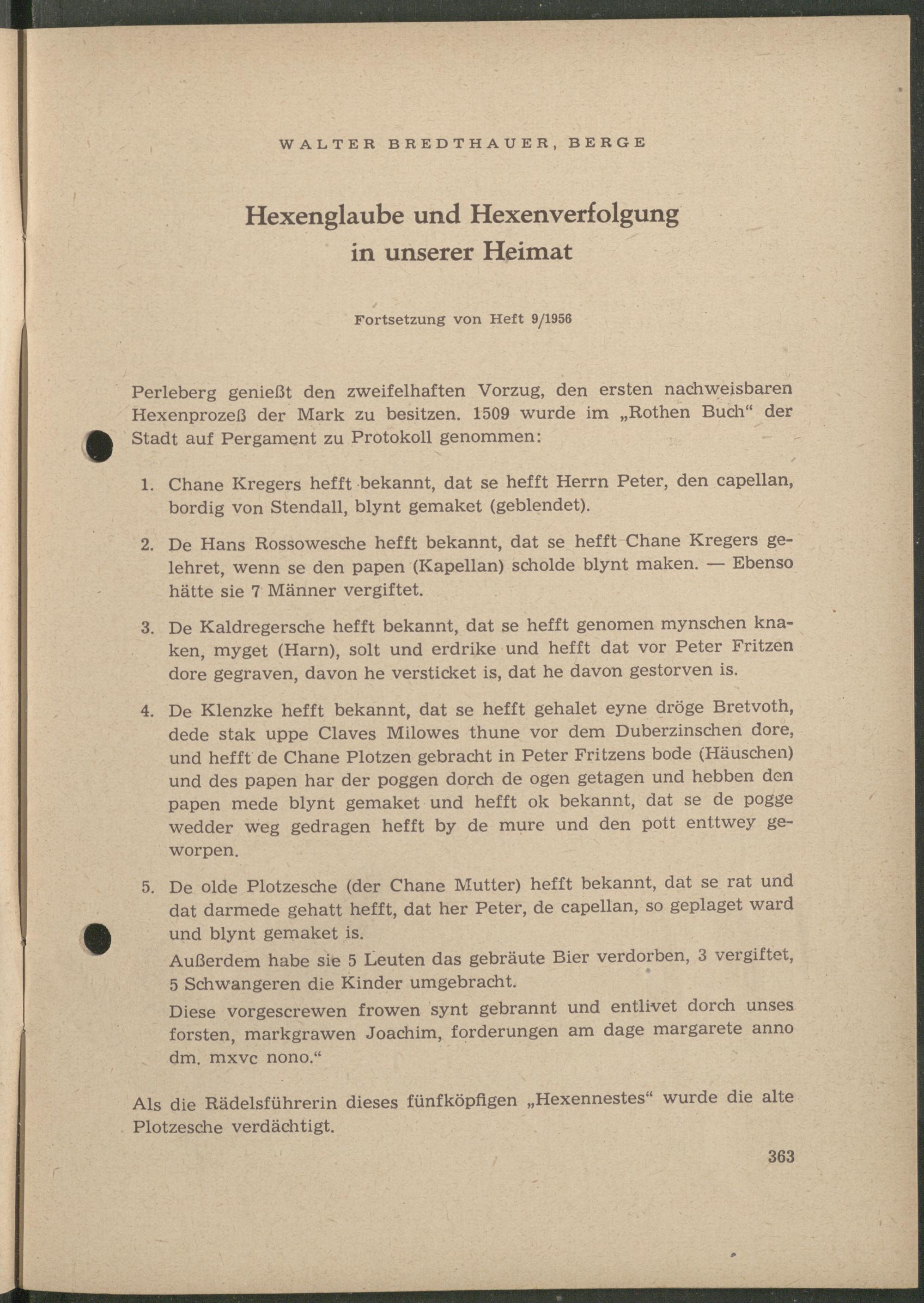 Bredthauer, Walter: Hexenglaube und Hexenverfolgung in unserer Heimat.