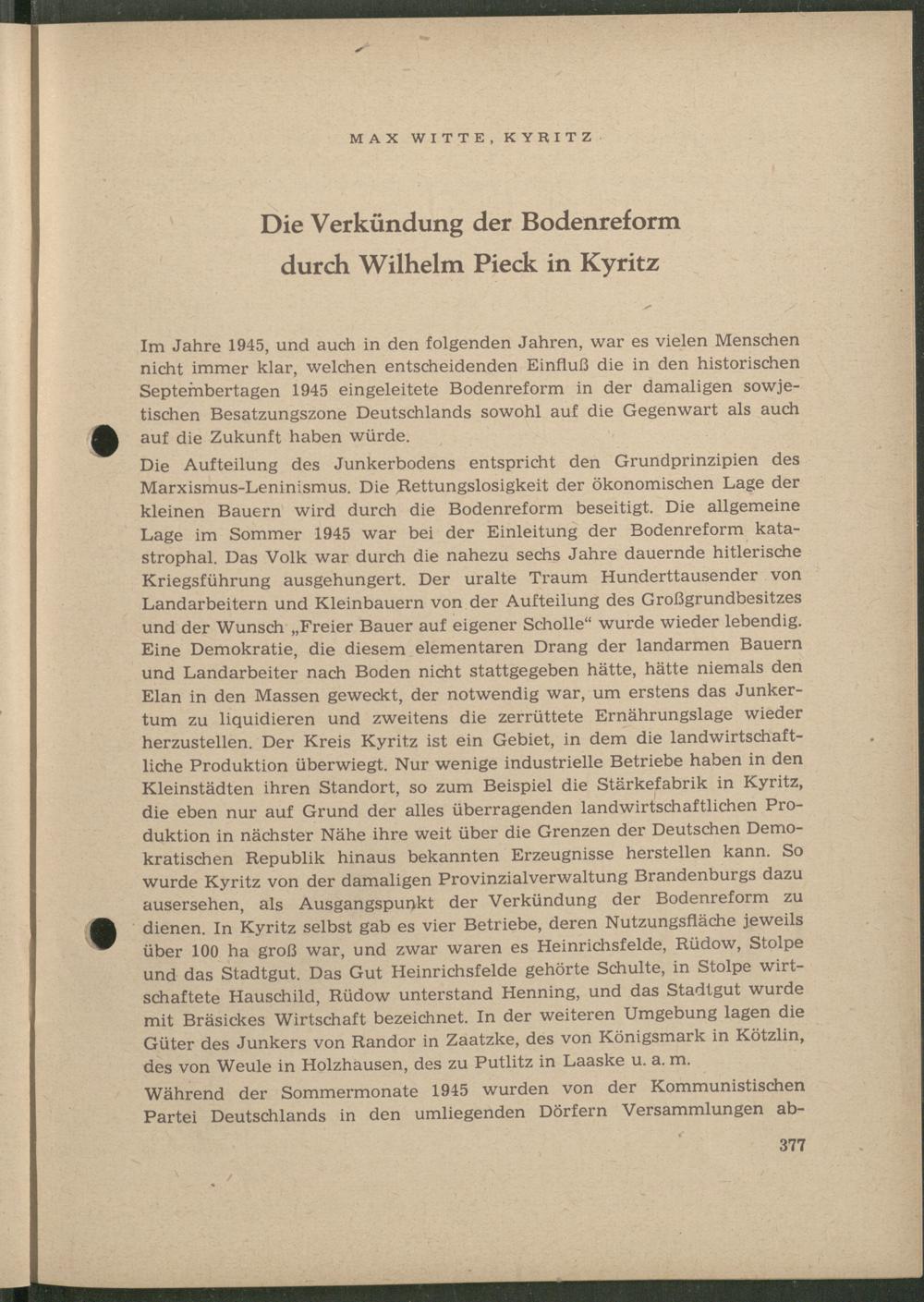 Witte, Max: Die Verkündung der Bodenreform durch Wilhelm Pieck in Kyritz [am 2. September 1945].